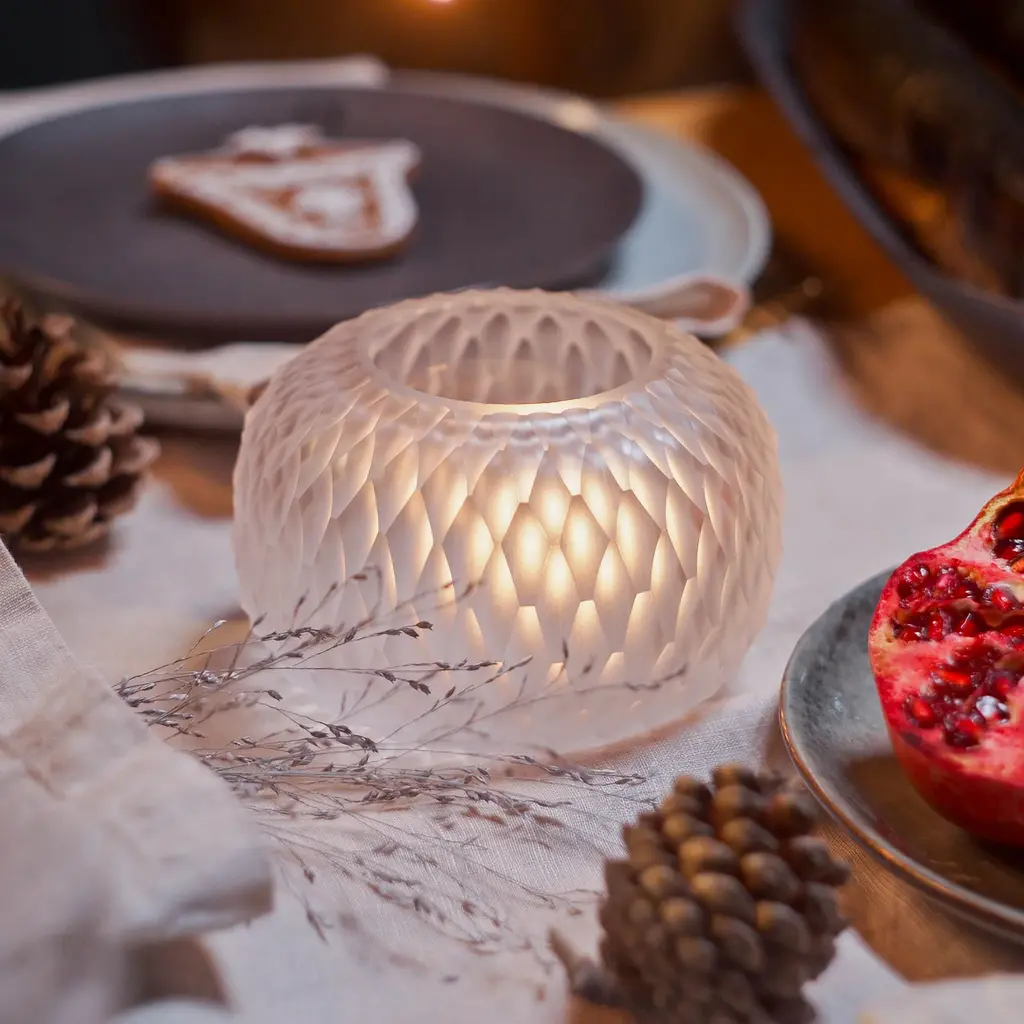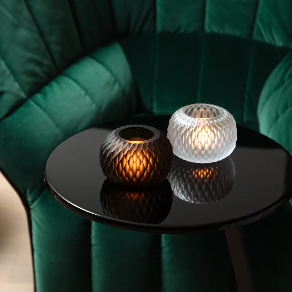 Transform your space with the subtle glow of the Ruckl Metamorphosis Tealight Candleholder from Bomma. Hand-blown crystal and intricate geometric cuts create a warm and inviting atmosphere. Add a personal touch by mixing and matching colors and sizes, each a unique work of art crafted by talented master glassmakers. Highlights Note: Being hand-made, the individual products can slightly differ in tone, color intensity or cut.