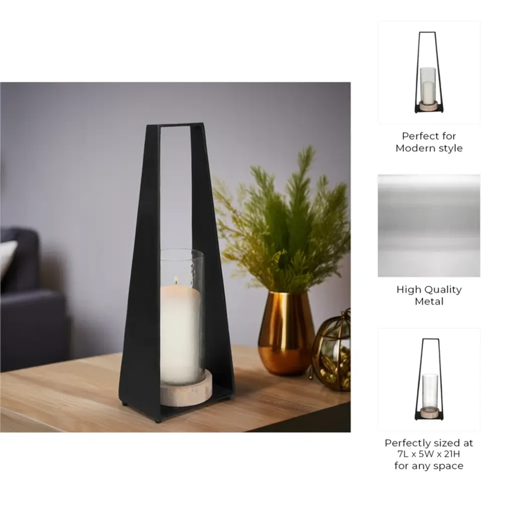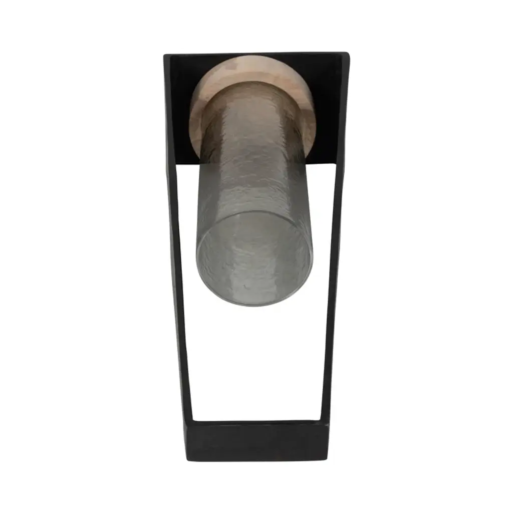 Discover serenity with Sagebrook Home's captivating glass candle holder, a blend of contemporary design with classic elegance. Measuring at a height of 18.75 inches, this holder promises to be an eye-catching addition to any room. Crafted with a sturdy metal frame, a soothing wooden base, and a crystal-clear glass cylinder, it gracefully holds your favorite tealights, casting an enchanting light that dances across your living space. The perfect balance of materials used in this piece ensures both durability and beauty, making it an indispensable part of your home decor collection.
