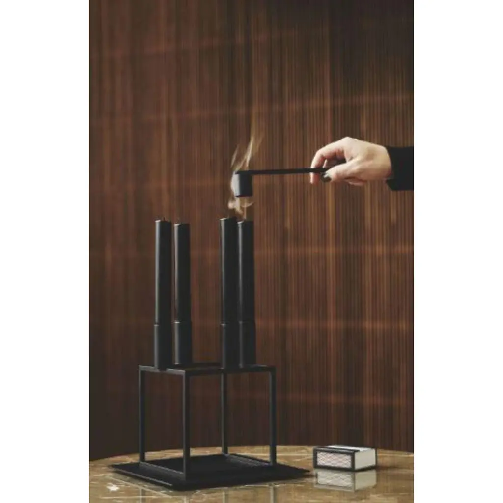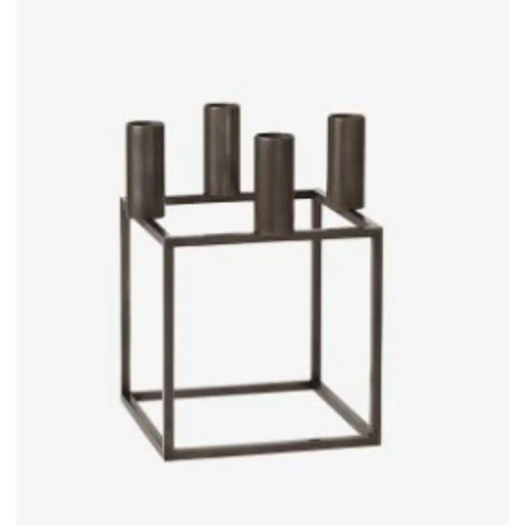 Set of 2 burnished copper Kubus and base 4 candle holder by LassenDimensions: D 14 x W 14 x H 20 cm Materials: Metal Also available in different dimensions. Weight: 1.50 KgA new small wonder has seen the light of day. Kubus Micro is a stylish, smaller version of the iconic Kubus candleholder and is also designed by Mogens Lassen. It is based on the exact same mathematical geometry as The very first Kubus Candleholder Mogens Lassen designed in 1962. Just very much smaller. Precisely half the size of Kubus 1.The black Kubus-shape frames the light beautifully and adds a minimalist expression to the table setting. Kubus Micro fits a single candle and is perfect for all kinds of festivities, where the table must be beautifully laid, and you want a very special atmosphere. The candleholder works alone in a beautiful still life or arrange several together for a greater effect.By Lassen is a Danish design brand focused on iconic designs created by Mogens and Flemming Lassen, founded by Lassens’ relatives in 2008. Brothers Mogens (1901-1987) and Flemming (1902-1984) Lassen are known as two of Denmark’s greatest architects and designers. Both were renowned pioneers of Danish functionalism and modernist architecture, honoured with numerous prestigious medals and awards. Headed by Mogens Lassen’s grandson Søren Lassen, By Lassen carries on the brothers’ design philosophy by manufacturing their iconic designs as well as products by other designers that complement the Lassen’s functionalist style. The company’s mission is to continue the tradition of timelessness, functionality and quality, and to introduce the Lassen’s design heritage to new generations.