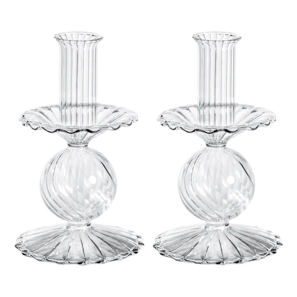Set Of 2 Classic Candle Holders In Venetian Glass