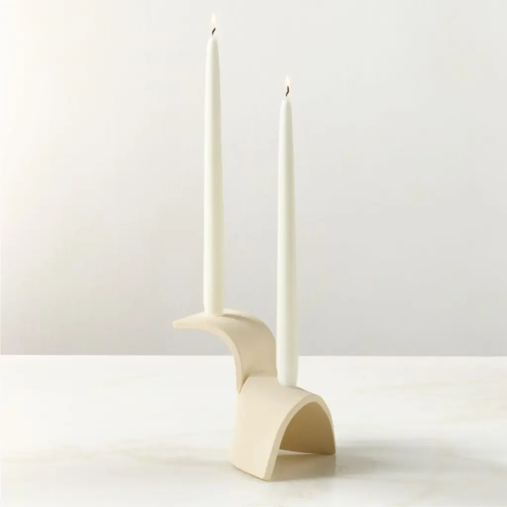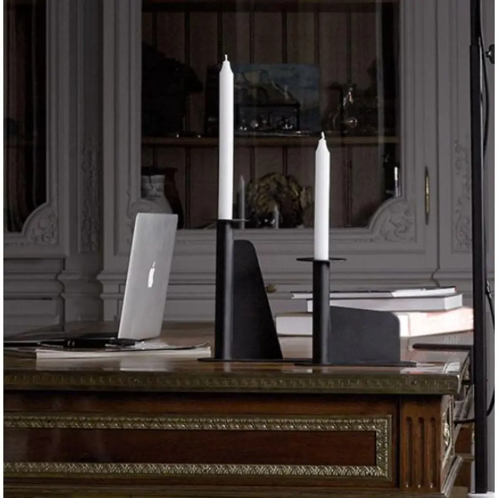 Set of 2 large and small safran candle holder by RadarDesign: Bastien TaillardMaterials: Metal.Dimensions: D 20 x W 7 x H 18.5 cm / D 18 x W 7 x H 16 cm.Elegant, timeless, understated. The RADAR collection allows you to take a welcome break from the teeming world of objects and styles, and proposes practical, beautifully designed products made by aesthetes for aesthetes.Francesca Bertini, Milanese born in the Mecca of world design, married to a Neapolitan with whom she lives in France. First tempted by a professional sports career in alpine skiing, she decided to invest in another challenge, her diploma in management of international companies at Università Bocconi in Milan.From marketing for a large editorial group to international and institutional relations for an important think tank European linked to the Italian Ministry of Foreign Affairs, she moved to France and put her experience at the service of the commercial management of a luxury decoration brand. Bastien Taillard was born into a family of interior decorators and designers where creativity was a driving force.After his training at the ENSCI (National School of Industrial Creation, Paris) this tireless traveler settles temporarily in Milan where he meets several of his future mentors, these iconic designers, pioneers and innovators. It is his own path and style that he develops according to his experiences and his encounters.