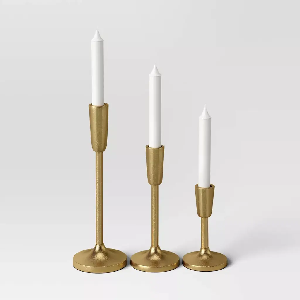 Set Of 3 Aluminum Taper Holders Gold - Threshold™: Metal Unity Candlestick Set, Spring Decor