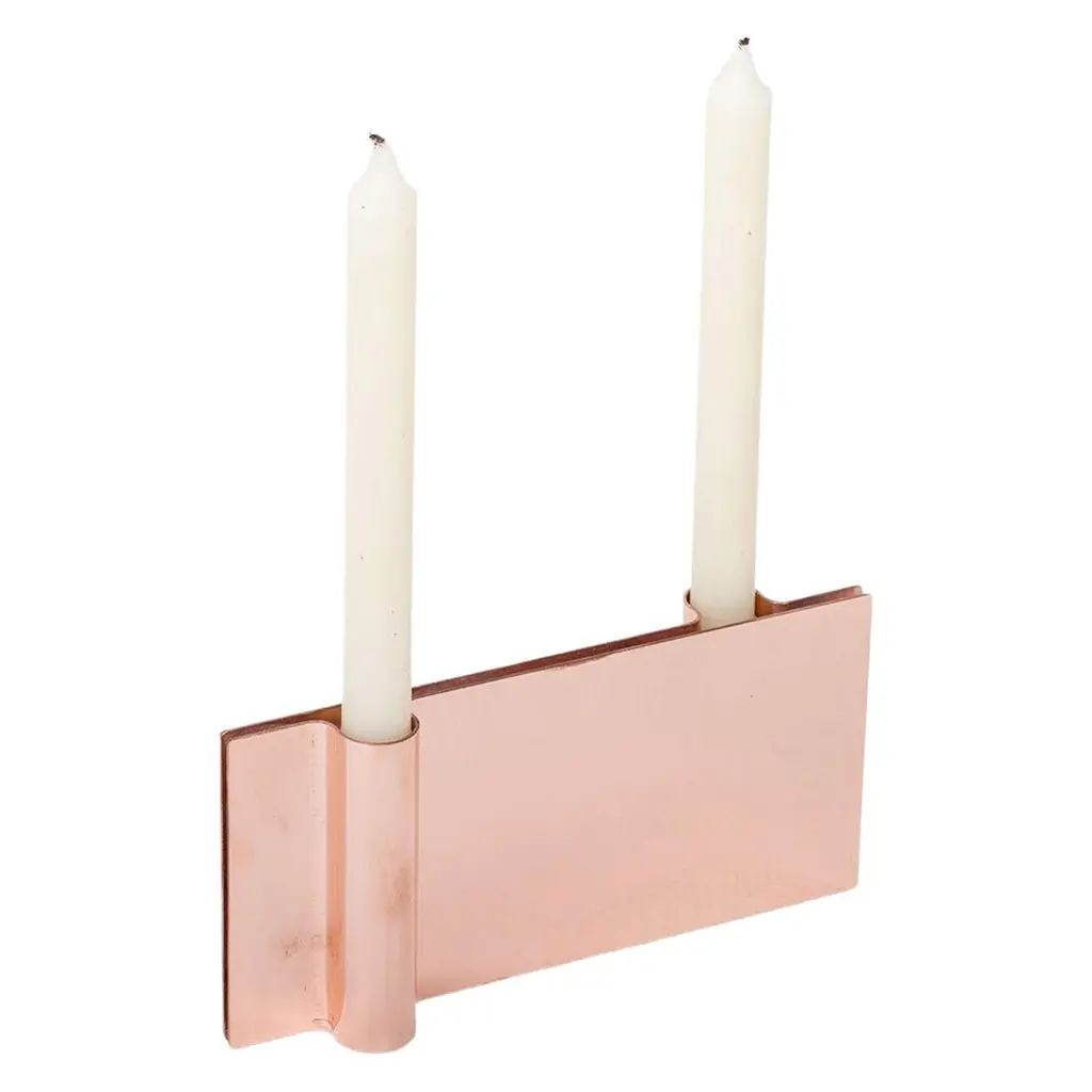 Set of 3 Folio Candle Holders by MingardoDimensions: D22.5 x W2.2 x H11 cm Materials: Polished natural copper, Polished natural brass, Polished natural stainless steel.Weight: 4.5 kgFolio is a modern candle’s holder, very minimalistic in the shape conceive a tri-dimensional aspect simply with a craftsman’s hand made gesture that creates its curvy shape.Made out from a pair of 2mm thick copper layers attached with a solid sole, it can find place everywhere. A natural oxidation, which is its own natural finish and enhancement, will eventually accurse, either fastly or more quietly, depending on the frequency and location of its use.Mingardo Ilario founded Mingardo Blacksmith Workshop in 1970, after over twenty years’ experience in the metal processing field.The production was initially focused on simple blacksmith works for the construction industry. Over the time, it has become more refined, enabling the company to collaborate with internationally renowned companies and architects: from the first collaborations with architect Carlo Scarpa to the more recent commissions for Museo del Novecento in Milan, Parco della Musica in Florence, and Teatro Petruzzelli in Bari.Over the years, the Workshop has achieved great results, with the production of unique metal products, all hand-wrought by a highly skilled team of specialized artisans. Nowadays, it is highly regarded in the local artisan field for its high-end refined finishing touches and details, and for its know-how.