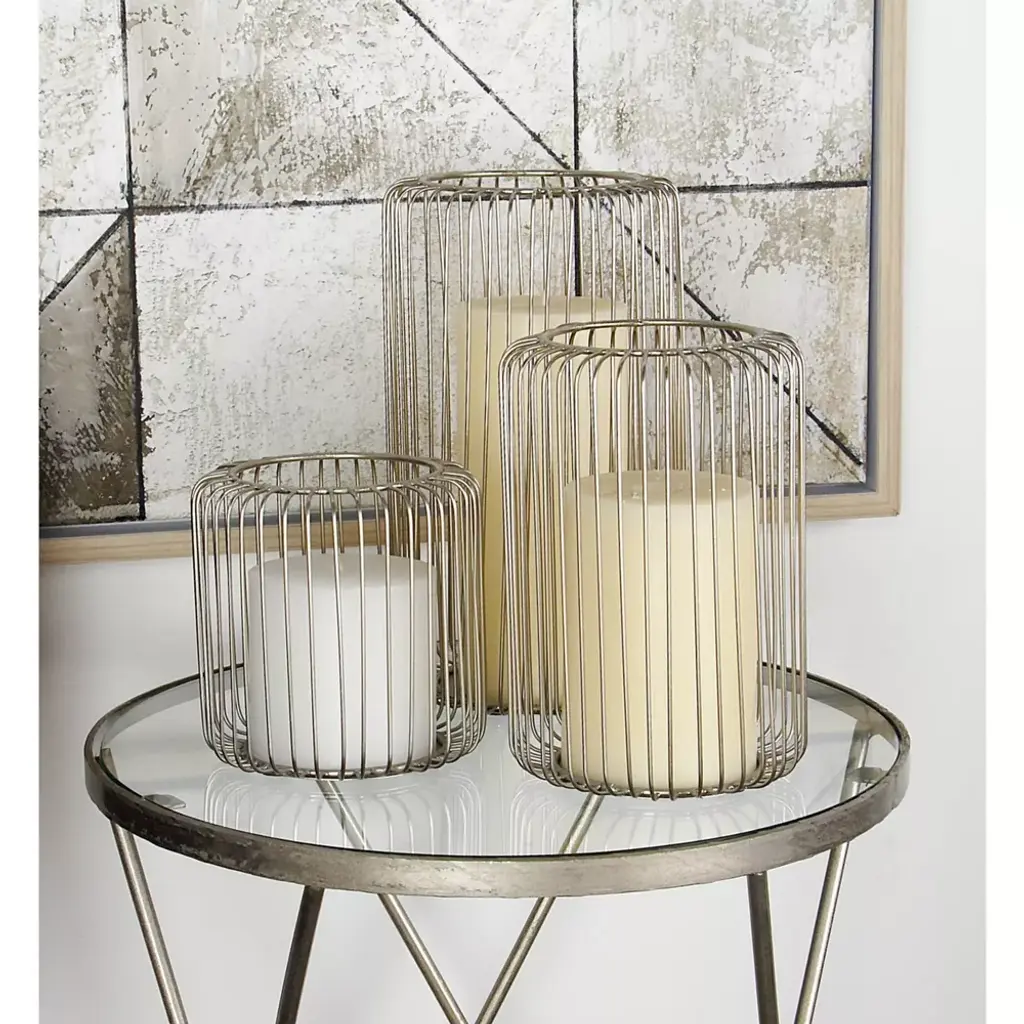 Delight your guests and make any occasion extra special by adding a lighted or flameless candle to this lantern. Made with a sturdy base, it is perfect for creating an elegant atmosphere at your table top or mantel. Display as standalone or as set candleholders on your console, coffee, or dining tables. Designed with black rubber stoppers at the base that prevent scratching furniture and table tops, as well as sliding around. This item ships in 1 carton. Suitable for indoor use only. Made in India. Each set comes with 3 candleholders, candle not included. Modern Design. Lantern pillar candle holder which can hold 3 pillar candles.
