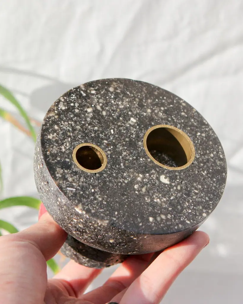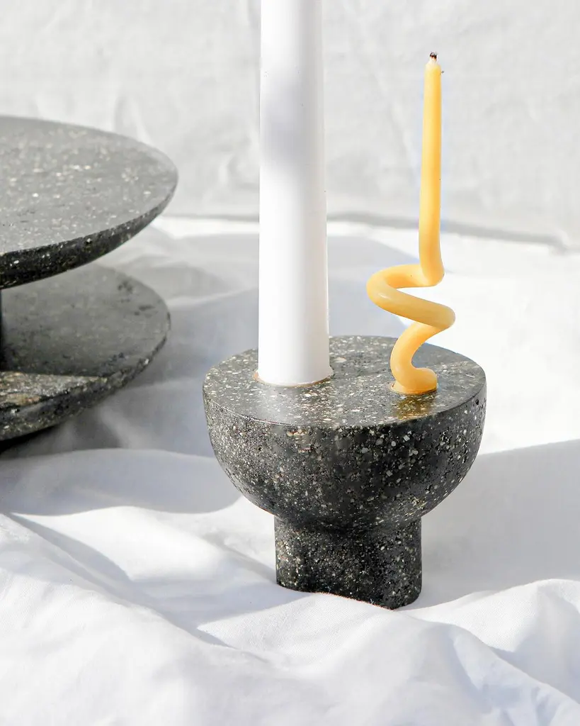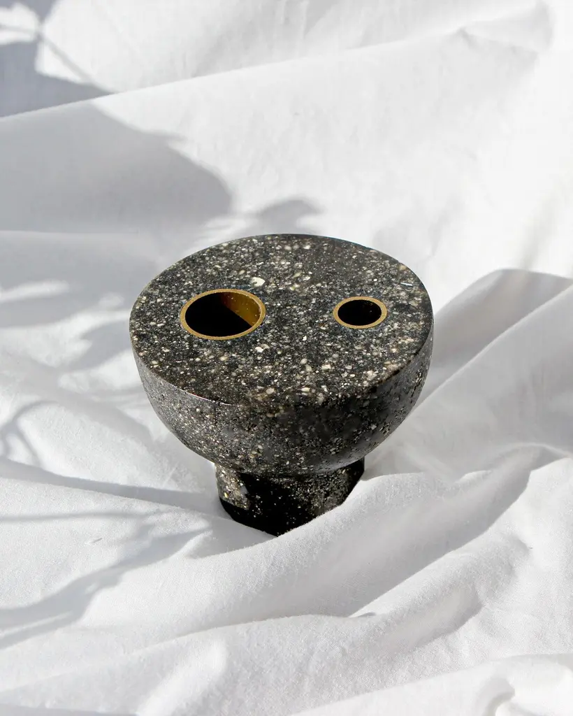 The Tempera series is made with upcycled duck egg yolk discarded by the pharmaceutical industry which is bio-degradable. Every piece is hand-made, color and measurement may slightly varyWKND Lab specializes in various design disciplines, including material research, object design, furniture design, and art installation. With a focus on material-driven narratives, WKND Lab communicates its philosophy about the dynamic interplay between design, humanity, and the natural environment. From Temperas SeriesMaterial: Duck egg yolk, binderOverall size: 17.6 W x 9.2 D x 14 H (cm)Individual Dimensions: 8.8 W x 9.2 D x 7 H (cm)Weight: avg. 1kgEvery piece is hand-made, color and measurement may slightly vary.Color BlackProduction time is 5 weeks.