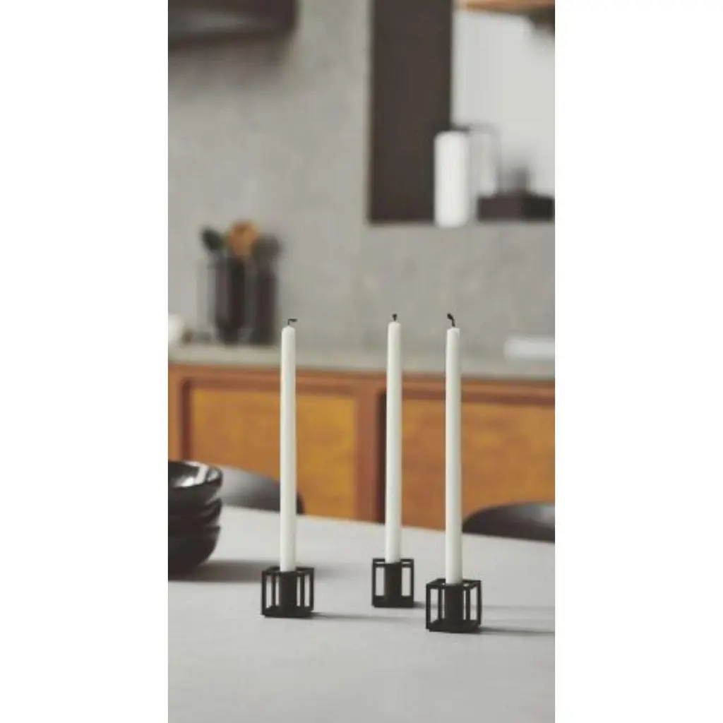 Set of 4 grey kubus 1 candle holders by LassenDimensions: D 7 x W 7 x H 7 cm Materials: Metal Also available in different dimensions.Weight: 0.40 kgA new small wonder has seen the light of day. Kubus Micro is a stylish, smaller version of the iconic Kubus candleholder and is also designed by Mogens Lassen. It is based on the exact same mathematical geometry as The very first Kubus Candleholder Mogens Lassen designed in 1962. Just very much smaller. Precisely half the size of Kubus 1.The black kubus-shape frames the light beautifully and adds a mi¬nimalist expression to the table setting. Kubus Micro fits a single candle and is perfect for all kinds of festivities, where the table must be beautifully laid, and you want a very special atmosphere. The candleholder works alone in a beautiful still life or arrange several together for a greater effect.By Lassen is a Danish design brand focused on iconic designs created by Mogens and Flemming Lassen, founded by Lassens’ relatives in 2008. Brothers Mogens (1901-1987) and Flemming (1902-1984) Lassen are known as two of Denmark’s greatest architects and designers. Both were renowned pioneers of Danish functionalism and modernist architecture, honoured with numerous prestigious medals and awards. Headed by Mogens Lassen’s grandson Søren Lassen, By Lassen carries on the brothers’ design philosophy by manufacturing their iconic designs as well as products by other designers that complement the Lassen’s functionalist style. The company’s mission is to continue the tradition of timelessness, functionality and quality, and to introduce the Lassen’s design heritage to new generations.