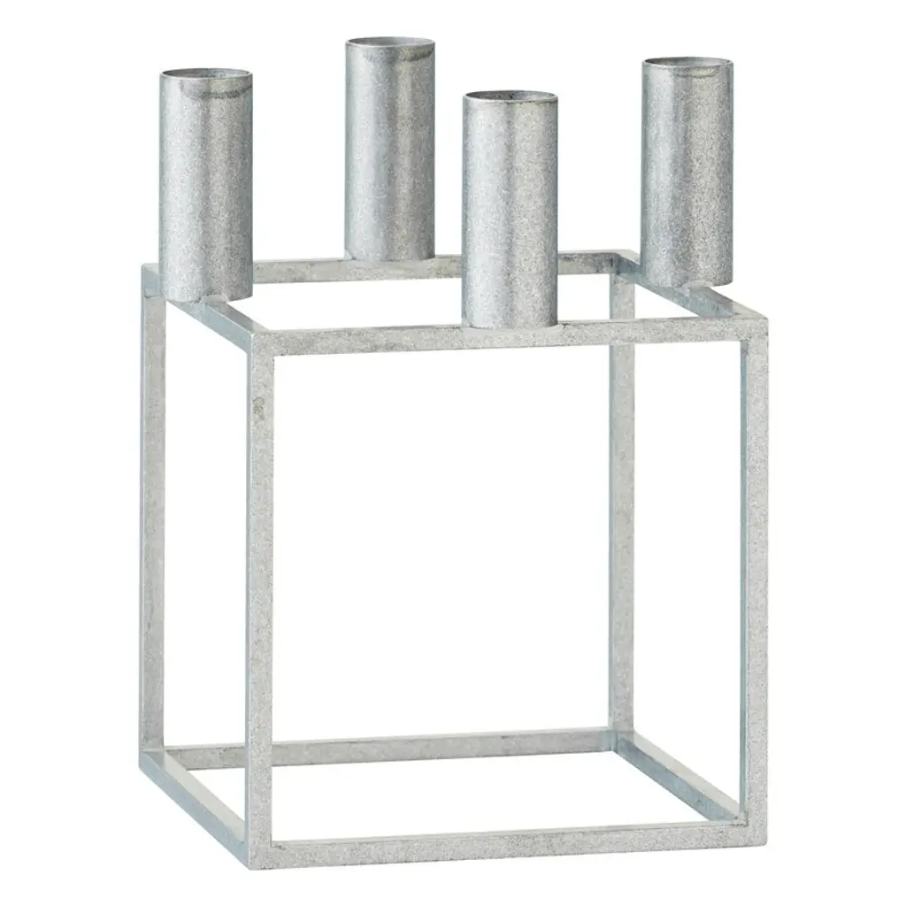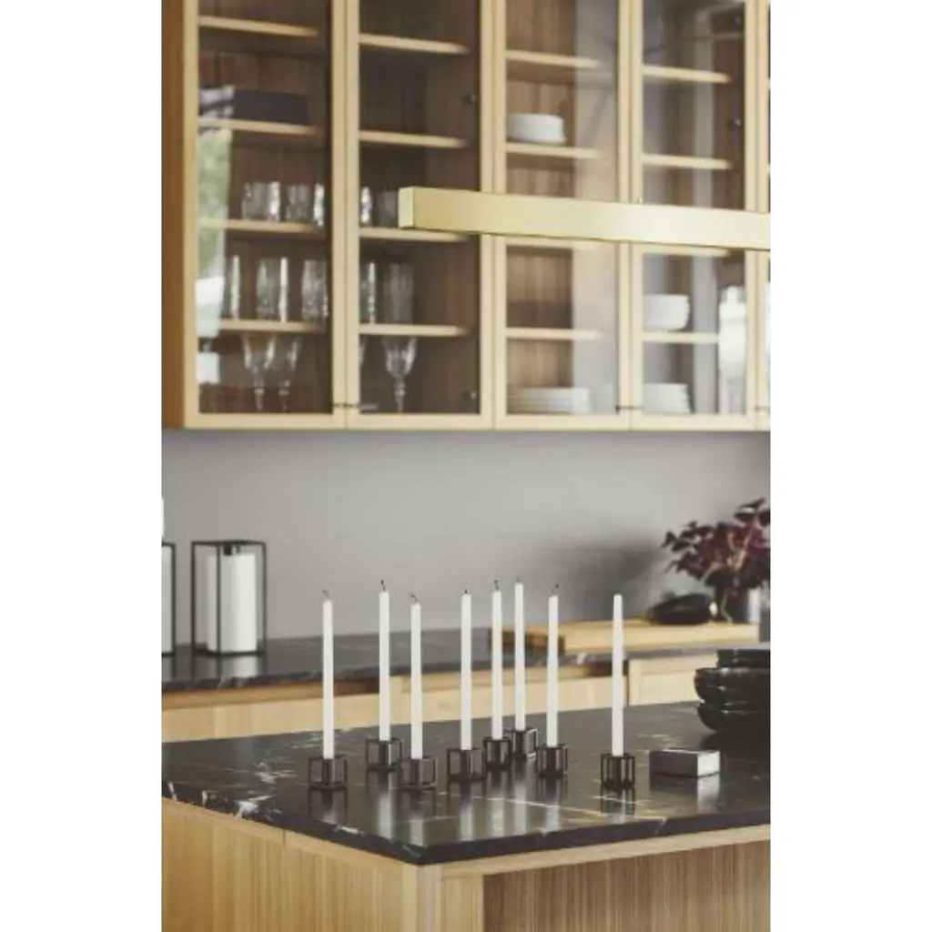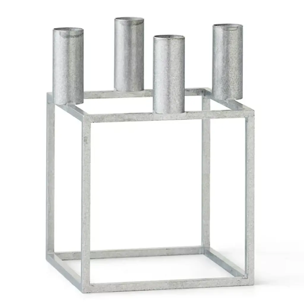Set of 4 nickel plated Kubus micro candle holders by Lassen.Dimensions: D 3.50 x W 3.50 x H 3.65 cm. Materials: Metal Also available in different dimensions.Weight: 0.15 KgA new small wonder has seen the light of day. Kubus Micro is a stylish, smaller version of the iconic Kubus candleholder and is also designed by Mogens Lassen. It is based on the exact same mathematical geometry as The very first Kubus Candleholder Mogens Lassen designed in 1962. Just very much smaller. Precisely half the size of Kubus 1.The black Kubus-shape frames the light beautifully and adds a mi¬nimalist expression to the table setting. Kubus Micro fits a single candle and is perfect for all kinds of festivities, where the table must be beautifully laid, and you want a very special atmosphere. The candleholder works alone in a beautiful still life or arrange several together for a greater effect.By Lassen is a Danish design brand focused on iconic designs created by Mogens and Flemming Lassen, founded by Lassens’ relatives in 2008. Brothers Mogens (1901-1987) and Flemming (1902-1984) Lassen are known as two of Denmark’s greatest architects and designers. Both were renowned pioneers of Danish functionalism and modernist architecture, honoured with numerous prestigious medals and awards. Headed by Mogens Lassen’s grandson Søren Lassen, By Lassen carries on the brothers’ design philosophy by manufacturing their iconic designs as well as products by other designers that complement the Lassen’s functionalist style. The company’s mission is to continue the tradition of timelessness, functionality and quality, and to introduce the Lassen’s design heritage to new generations.