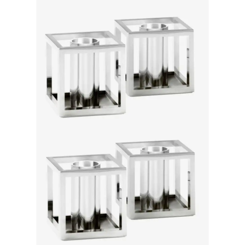 Set Of 4 Nickel Plated Kubus Micro Candle Holders By Lassen