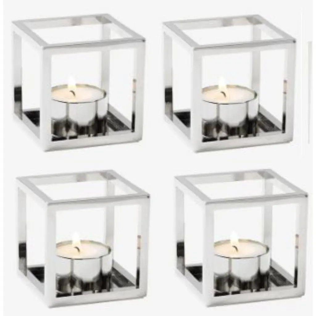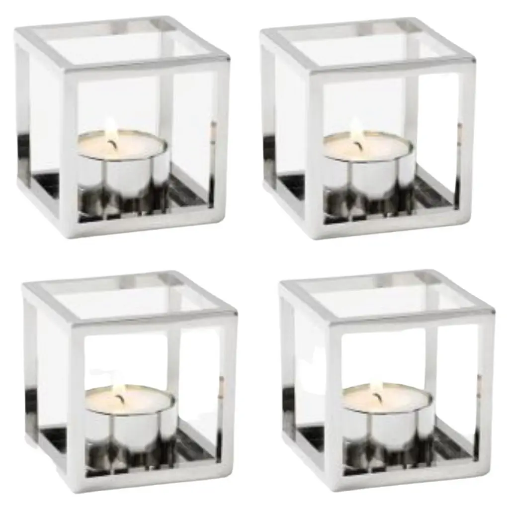 Set Of 4 Nickel Plated Kubus T Candle Holders By Lassen