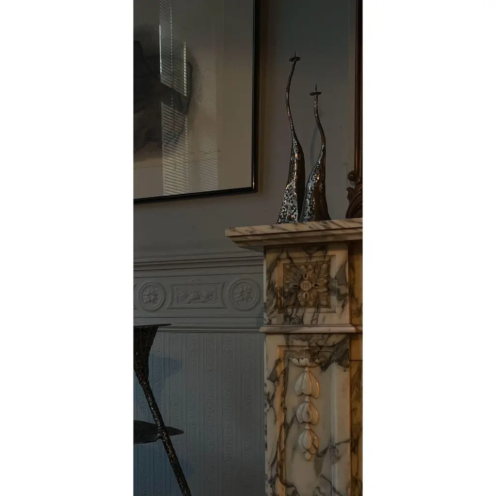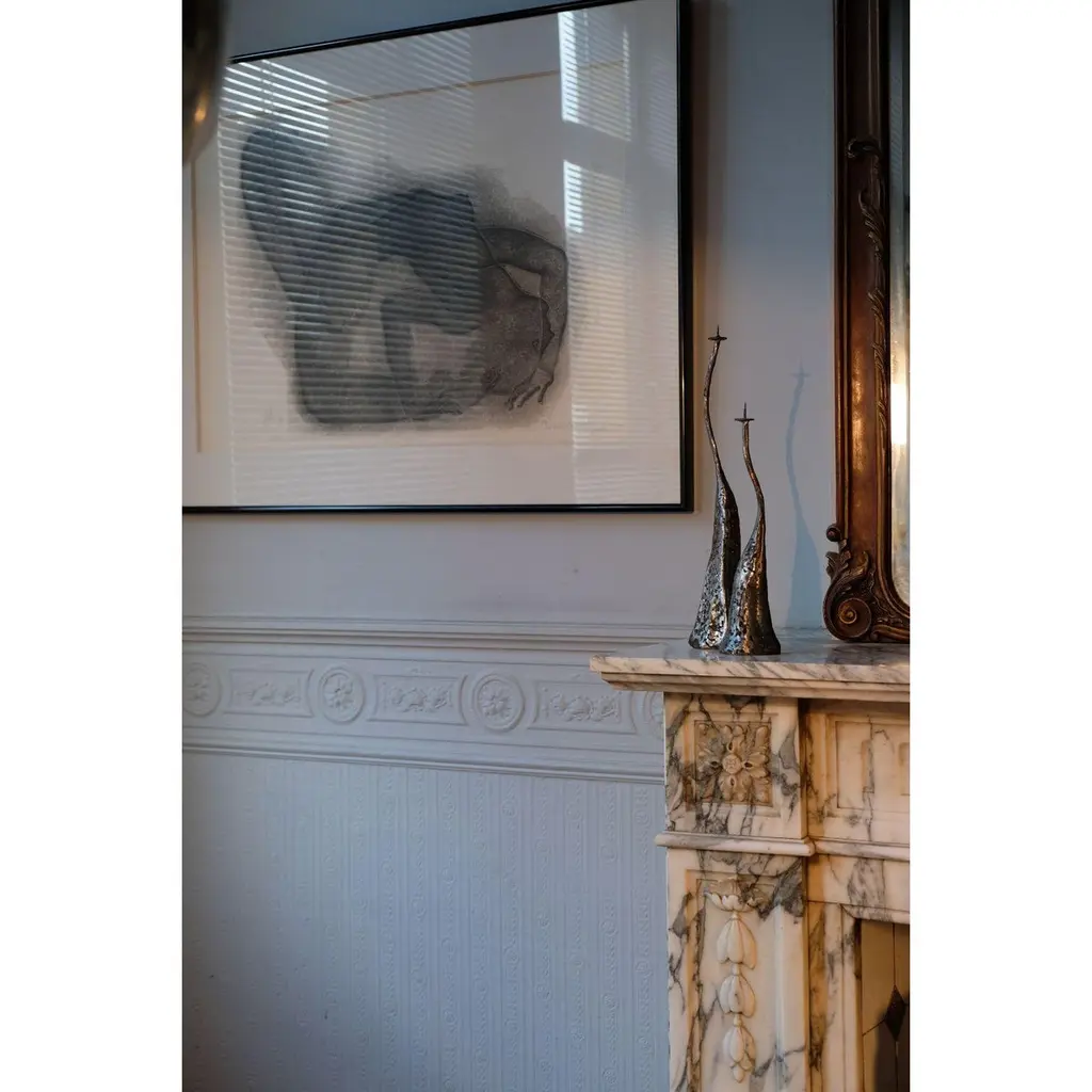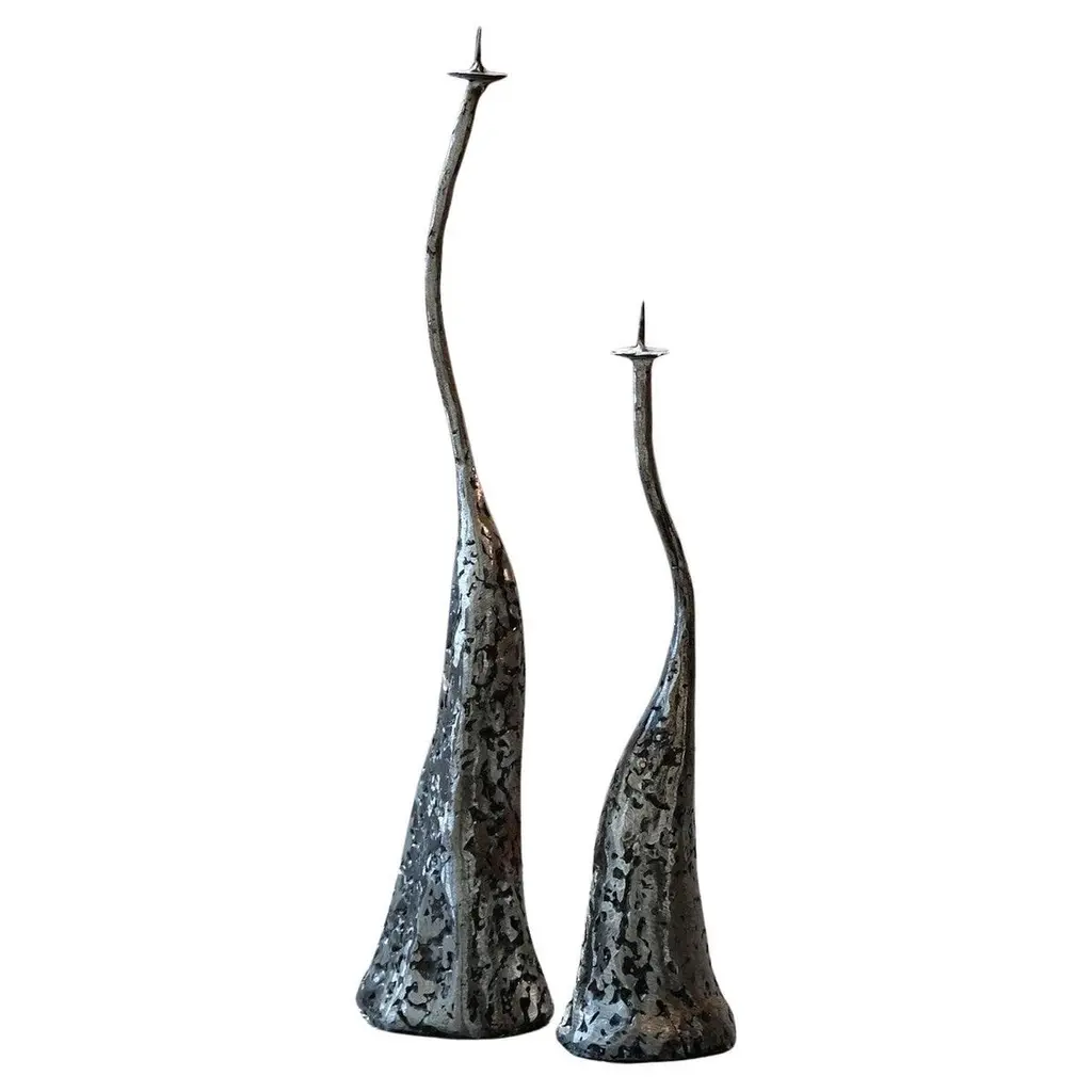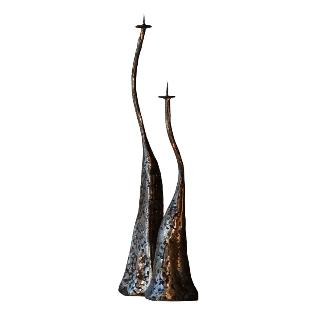 Set of Floral Candle Holder by Chanel KapitanjUnique PieceDimensions: D 90 x W 90 x H 42 cmMaterials: MetalThis collection aims to offer completely unique pieces. Each is different as it is made from scrap metal, steel sheets and other materials left from my metal welding workshop. Assembled and textured in a way that it is impossible to get two identical objects. Yet this technique allows various possibilities in shape and dimension, therefore do not hesitate to ask for a special project (table, chair, lounge, bench, cabinet, etc.) Born in Liège in 1992, Chanel Kapitanj studied Industrial Design in Belgium. Her fascination to metallic materials and manual work, pushed her to learn the profession of welder. Following which, in 2017, she launched her Design and Ironwork studio.Each object is made and assembled by hand in her workshop in Sambreville. Each creation is artisanal, unique and locally sculpted.