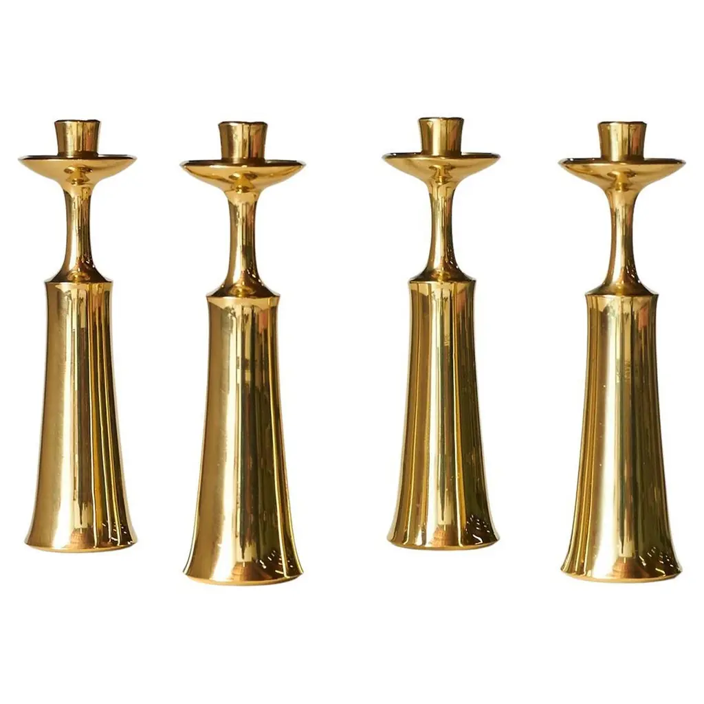 Set Of Four Max Brüel 'Jazz' Candleholders, Steel With Brass By Karakter