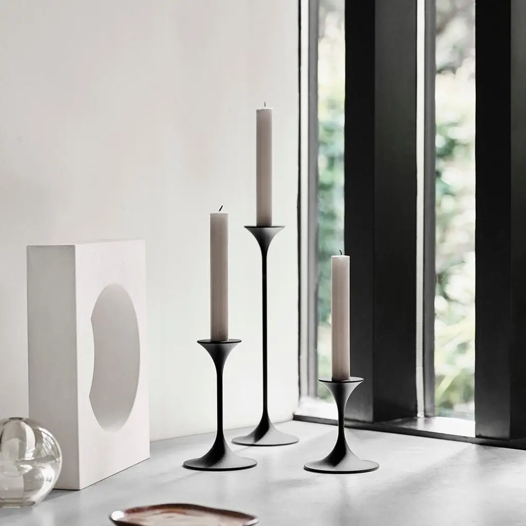 Candleholder designed by Max Brüel in 1961. Elegant and with a hint of whimsy, the modular candleholder Jazz was conceived in 1961 by Danish architect, ceramist and jazz musician Max Brüel. A slender, graceful silhouette in three heights, Jazz is an elegant addition to the home – by itself or in groups.A Jazz candleholder comes with a top, a base and three interchangeable stems in different heights to fit any occasion.Production delay:8-10 weeksImportant information regarding images of products:Please note that some of the images show other colors and variations of the model, these images are only to present interior design proposals. The item that is selling is on the first image. Important information regarding color(s) of products:Actual colors may vary. This is due to the fact that every computer monitor, laptop, tablet and phone screen has a different capability to display colors and that everyone sees these colors differently. We try to edit our photos to show all of our products as life-like as possible, but please understand the actual color may vary slightly from your monitorAbout the designer:Danish architect, ceramicist and jazz musician Max Brüel (1927-1995) was a versatile artistic talent born out of a highly creative family. He won his first architecture competition while still enrolled in the Royal Academy of Art in the 1940s all the while embarking on a career as a jazz musician, which won him international recognition in the 1950s. Alongside his vibrant musical work, Brüel continued his career as an architect and made his mark with the futuristic Herlev Hospital in Copenhagen and the poetic chapel in Glostrup, while also working as a ceramiscist and a designer.About the manufacturer:Karakter is a Danish design company founded on a spirit of exploration, courage and an uncompromising attitude to quality. Rooted in the Scandinavian design tradition with an international outlook, Karakter presents a portfolio of furniture, lighting and objects that is relevant, honest, expressive and sometimes playful. Aspiring to build an enduring legacy, they work with contemporary designers such as Aldo Bakker and PlueerSmitt and present works by the masters Bodil Kjær, Achille and Pier Giacomo Castiglioni, Paul McCobb, Joe Colombo and Angelo Mangiarotti. Each piece has a clear, undeniable expression, ensuring it pride of place in private homes and public spaces worldwide.