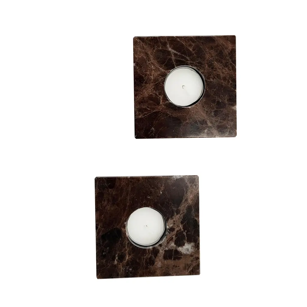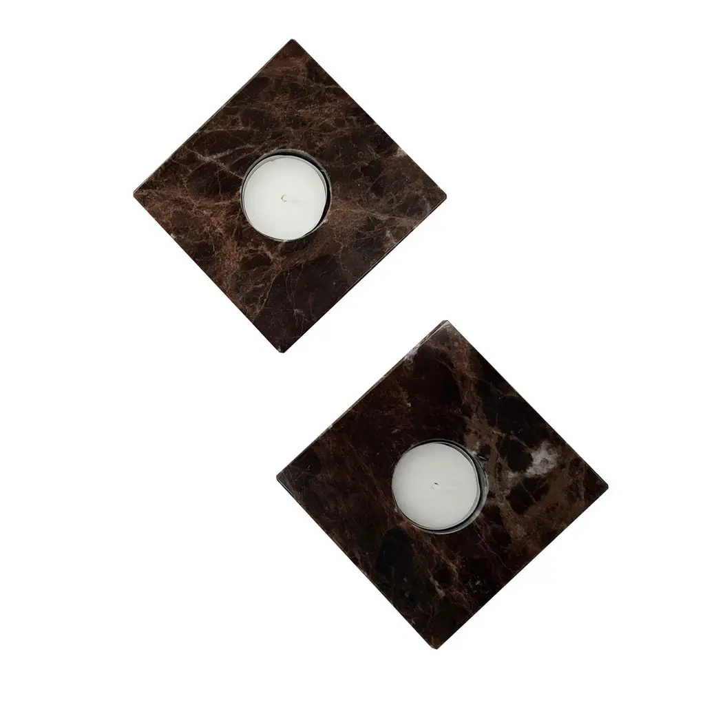 Set Of Two Emperor Brown Marble Candle Holders Design Mother’s Day Gift Spain