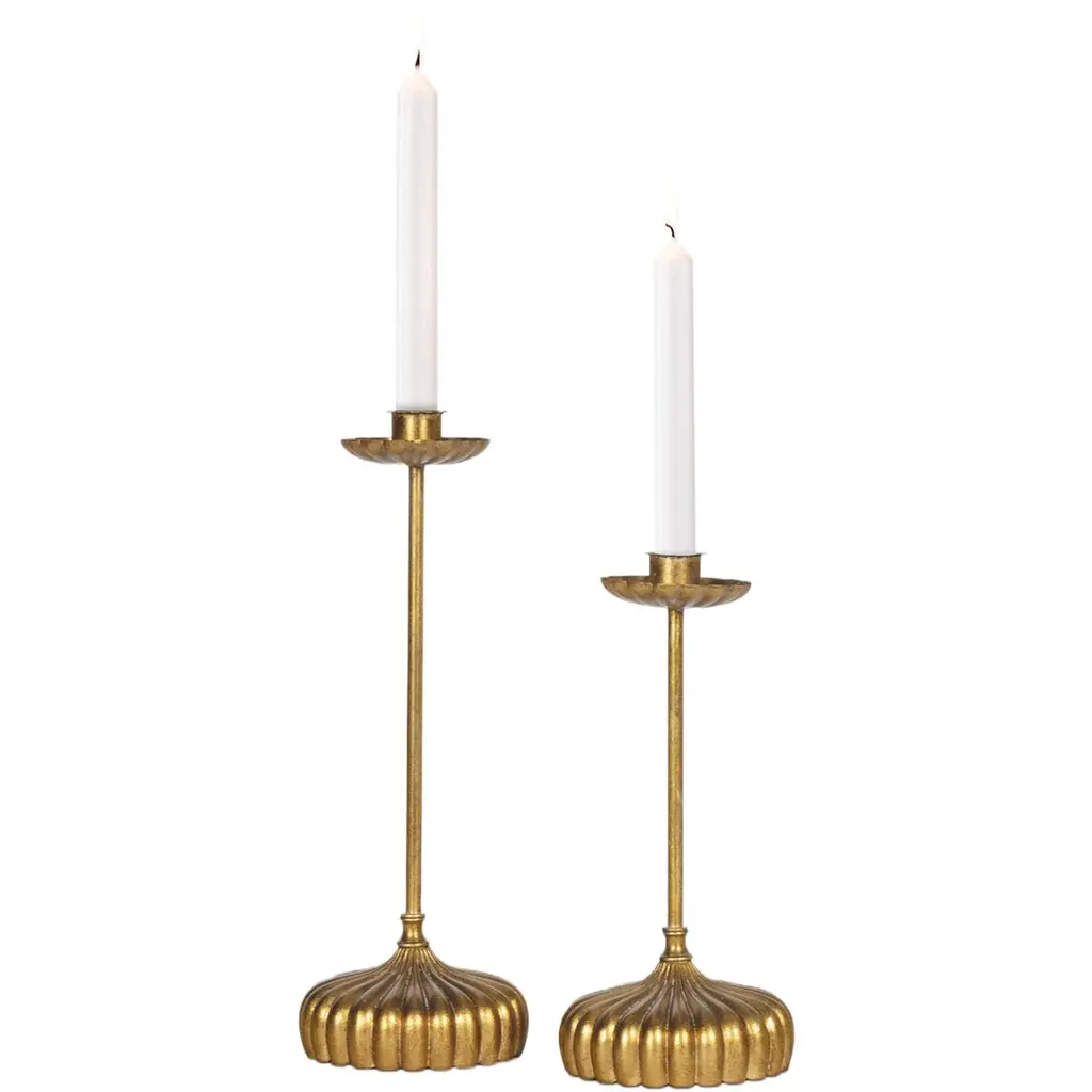 Introduce classic elegance to your home with the Clove Candle Holder Set. Each holder boasts antique-style candle cups with intricate bobeche detailing and dramatic bases. The varying heights create a balanced, multi-level effect, adding a refined and graceful touch to any room.