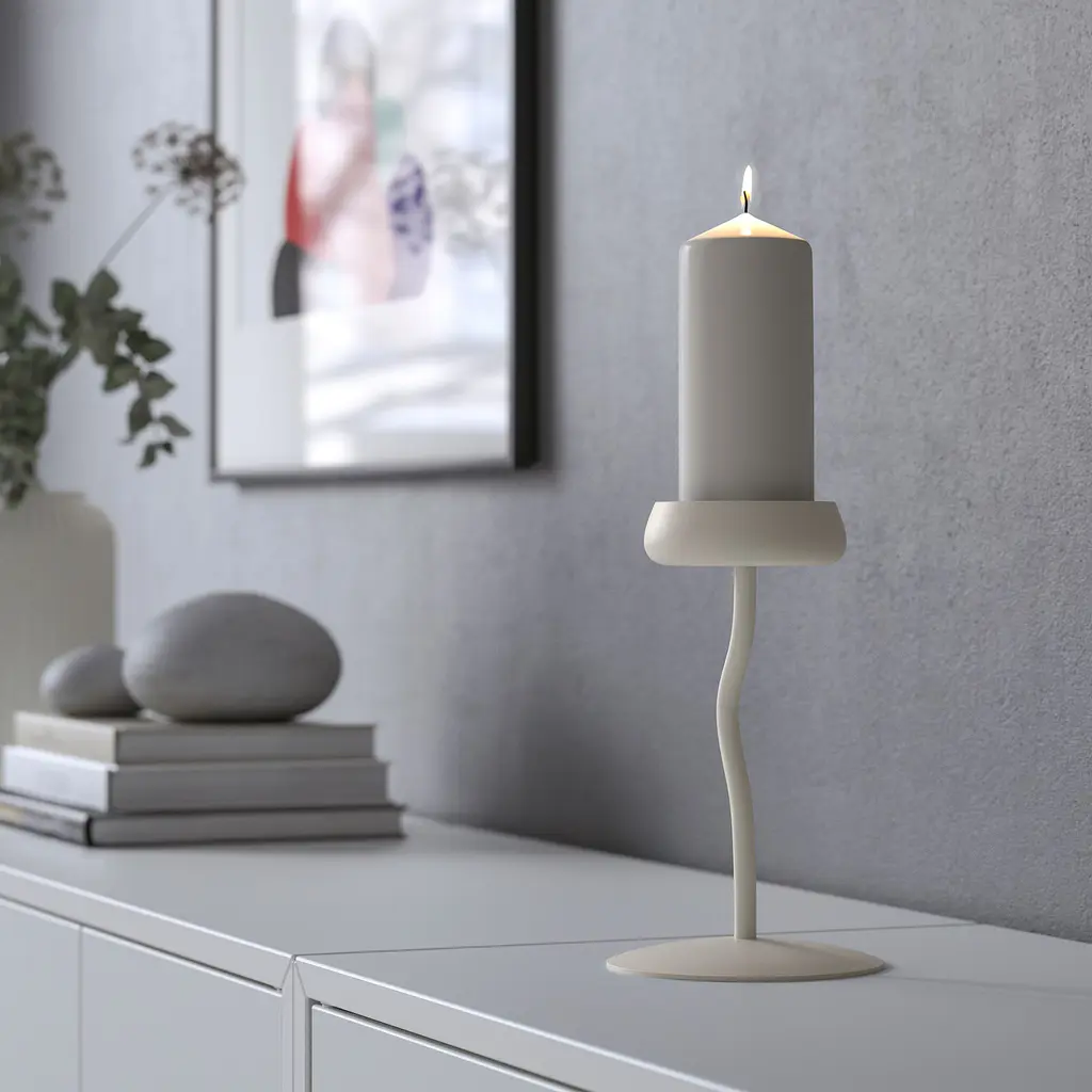 SILVERPÄRON Pillar candle holder - white 8 ". Combine with the slightly taller black candlestick to create a graphic and dynamic expression. The gently curved line captures the organic and natural beauty of growing flowers. Offers both mood lighting and is beautiful on its own.