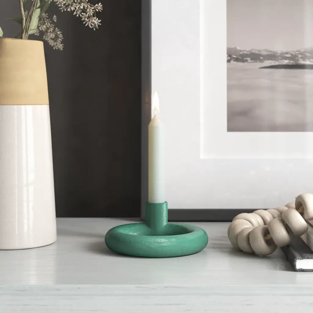 This sleek, modern aluminum candlestick effortlessly elevates the ambiance of any room. Designed specifically for taper candles, it provides a timeless elegance to your home décor, making every day feel special.