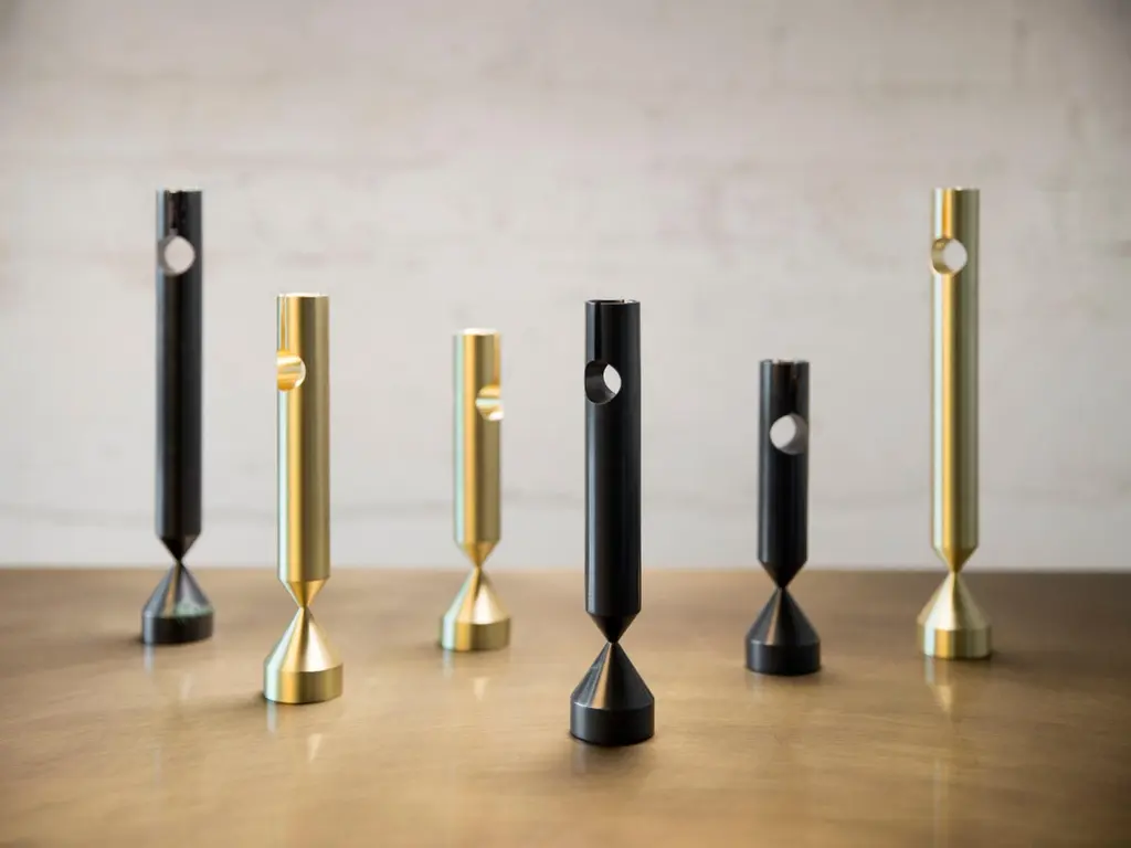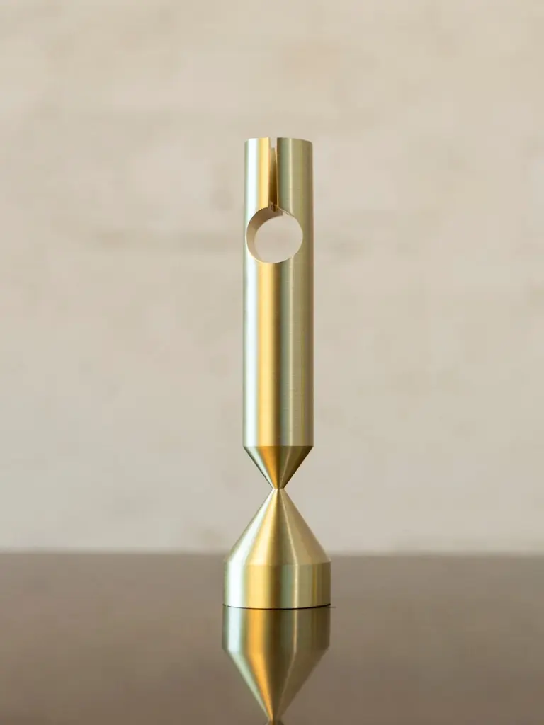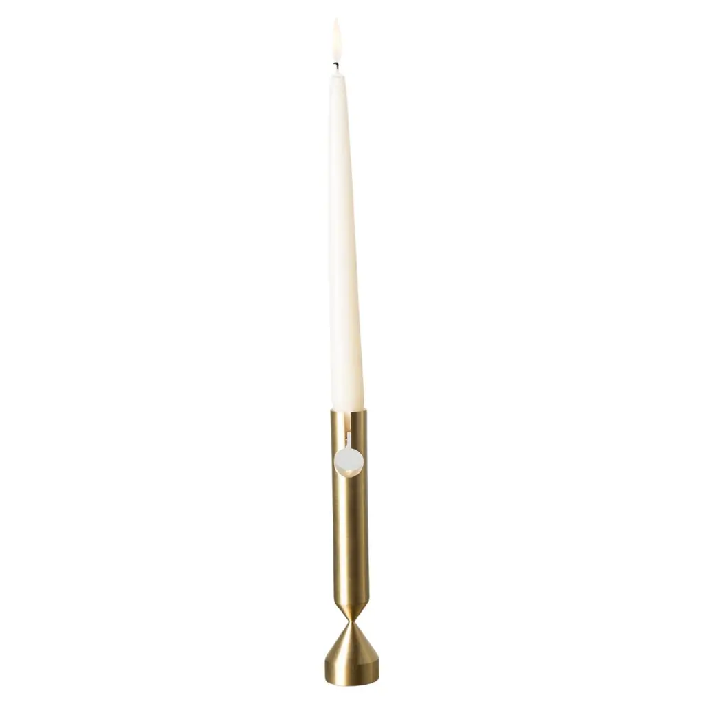 Small Pillar brass candlestick by Gentner DesignDimensions: D 3.8 x H 13.8 cmMaterials: brush raw brassAvailable in brush raw brass and darkened brass.Available in small, medium and large.Gentner DesignRooted in a language of sculpture, character defining details, and world renowned craftsmanship, the work is found at the crossroads of design and art.Established in 2011, the namesake furniture label is a rare combination of aesthetic dexterity and mastery of craft resulting in furniture and objects that are expressive, formal, and transcend materiality.The collection is based in metal and incorporates only natural materials such as leather, wood, and glass in unique ways, challenging our assumptions.Christopher GentnerChristopher Gentner, with a BFA in metalsmithing from the Cleveland Institute of Art and apprenticeships under sculptors and jewelers, together with dedication to craft, quickly developed his reputation nationally as a foremost authority of metal fabrication and furniture.One of his crowning achievements was the re-creation and fabrication of the Frank Lloyd Wright Robie House gates.These unique experiences are the foundation of his design philosophy which he employs in his own line of furniture, lighting, and objects.