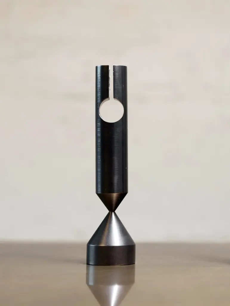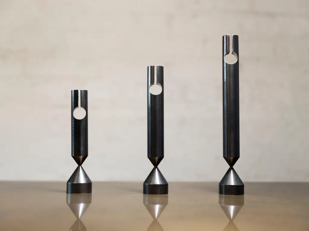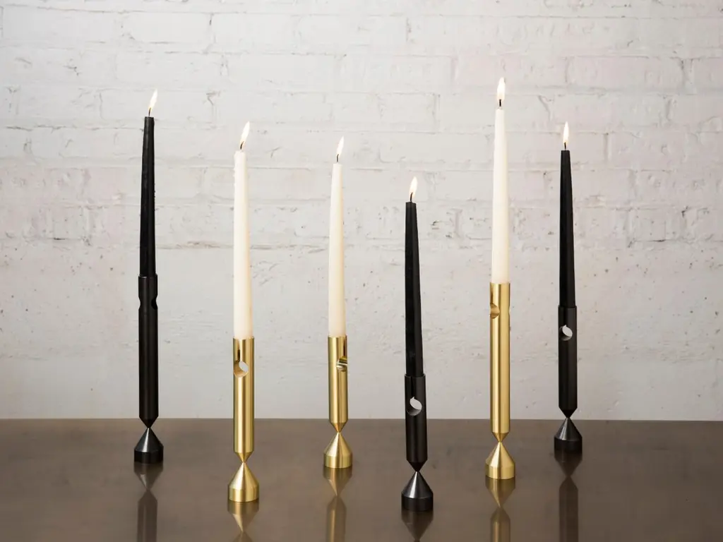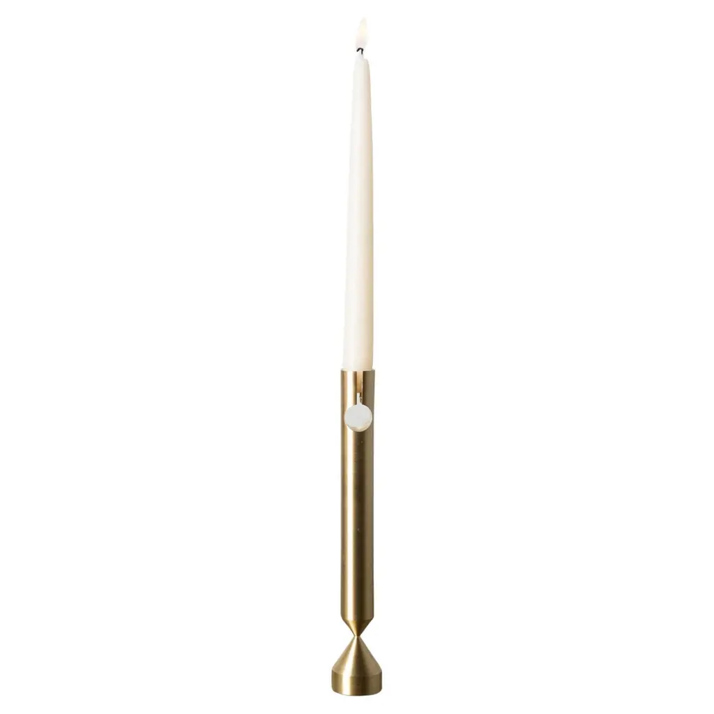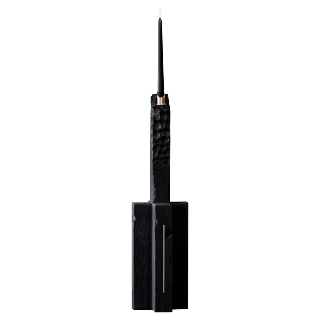 Small pillar darkened brass candlestick by Gentner DesignDimensions: D 3.8 x H 13.8 cmMaterials: darkened brassAvailable in brush raw brass and darkened brass.Available in small, medium and large.Gentner DesignRooted in a language of sculpture, character defining details, and world renowned craftsmanship, the work is found at the crossroads of design and art.Established in 2011, the namesake furniture label is a rare combination of aesthetic dexterity and mastery of craft resulting in furniture and objects that are expressive, formal, and transcend materiality.The collection is based in metal and incorporates only natural materials such as leather, wood, and glass in unique ways, challenging our assumptions.Christopher GentnerChristopher Gentner, with a BFA in metalsmithing from the Cleveland Institute of Art and apprenticeships under sculptors and jewelers, together with dedication to craft, quickly developed his reputation nationally as a foremost authority of metal fabrication and furniture.One of his crowning achievements was the re-creation and fabrication of the Frank Lloyd Wright Robie House gates.These unique experiences are the foundation of his design philosophy which he employs in his own line of furniture, lighting, and objects.