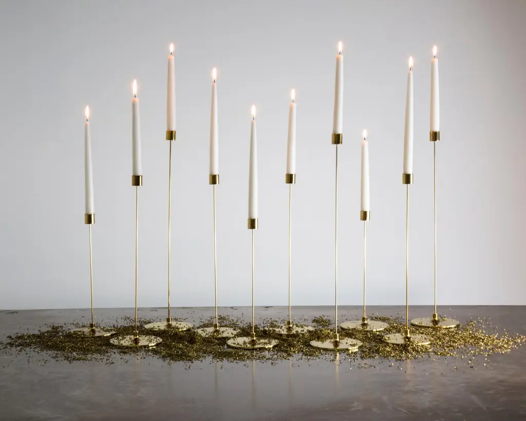 Small pin darkened brass candlestick by Gentner DesignDimensions: D 12.7 x H 30.5 cmMaterials: darkened brassAvailable in polished tarnished brass and darkened brass.Available in small, medium and large.With an 12”, 16”, or 20” height, the candlesticks appear to almost float. Machined from solid brass both top and bottom, each one is hand polished and tarnished to just the right point of patina. These are both modern and traditional at the same time in work in a myriad of environments.Gentner DesignRooted in a language of sculpture, character defining details, and world renowned craftsmanship, the work is found at the crossroads of design and art.Established in 2011, the namesake furniture label is a rare combination of aesthetic dexterity and mastery of craft resulting in furniture and objects that are expressive, formal, and transcend materiality.The collection is based in metal and incorporates only natural materials such as leather, wood, and glass in unique ways, challenging our assumptions.Christopher GentnerChristopher Gentner, with a BFA in metalsmithing from the Cleveland Institute of Art and apprenticeships under sculptors and jewelers, together with dedication to craft, quickly developed his reputation nationally as a foremost authority of metal fabrication and furniture.One of his crowning achievements was the re-creation and fabrication of the Frank Lloyd Wright Robie House gates.These unique experiences are the foundation of his design philosophy which he employs in his own line of furniture, lighting, and objects.