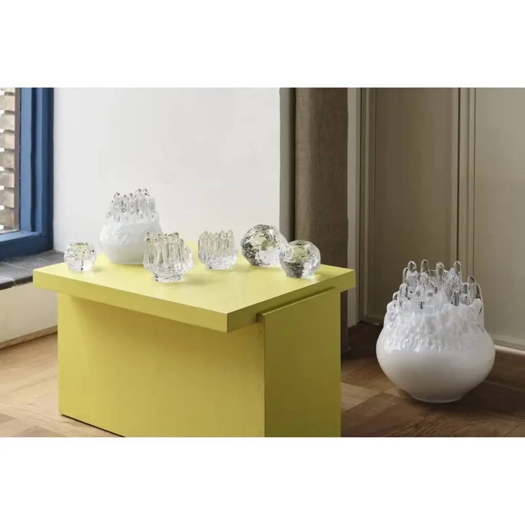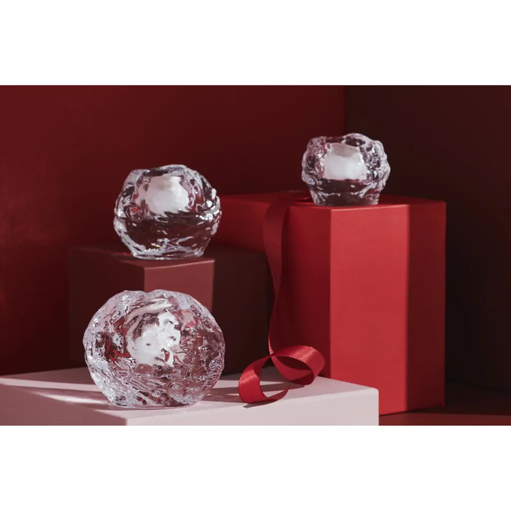 Kosta Boda's Snowball votive candle holder is one of the most iconic classics of Swedish glass design. Published in 1973, Ann Wolff's candle lantern has become so popular that more than 15 million copies of this beautiful snowqueen have been sold worldwide. The delicately beautiful glass lantern was created by blowing glass into a snowdrift – as the name suggests. The Snowball candle holder's organic shape and uneven surface evoke the atmospheric darkness of winter, where you can now light a candle to bring light into the dark.