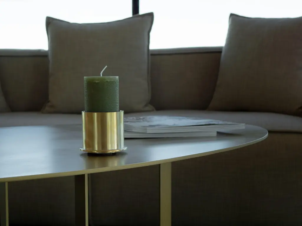 Handcrafted candle-holder model "C'ERA", made in brass; with its sober and elegant design, this piece perfectly fits into modern-contemporary context.Proudly Made in Italy, without never forgetting the importance of craftsmanship.Shown here in natural brass, this piece is also available in brown burnished brass and anthracite burnished brass.