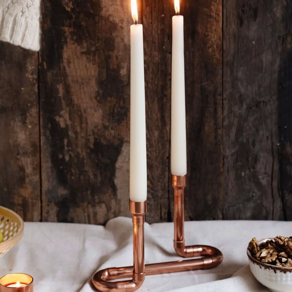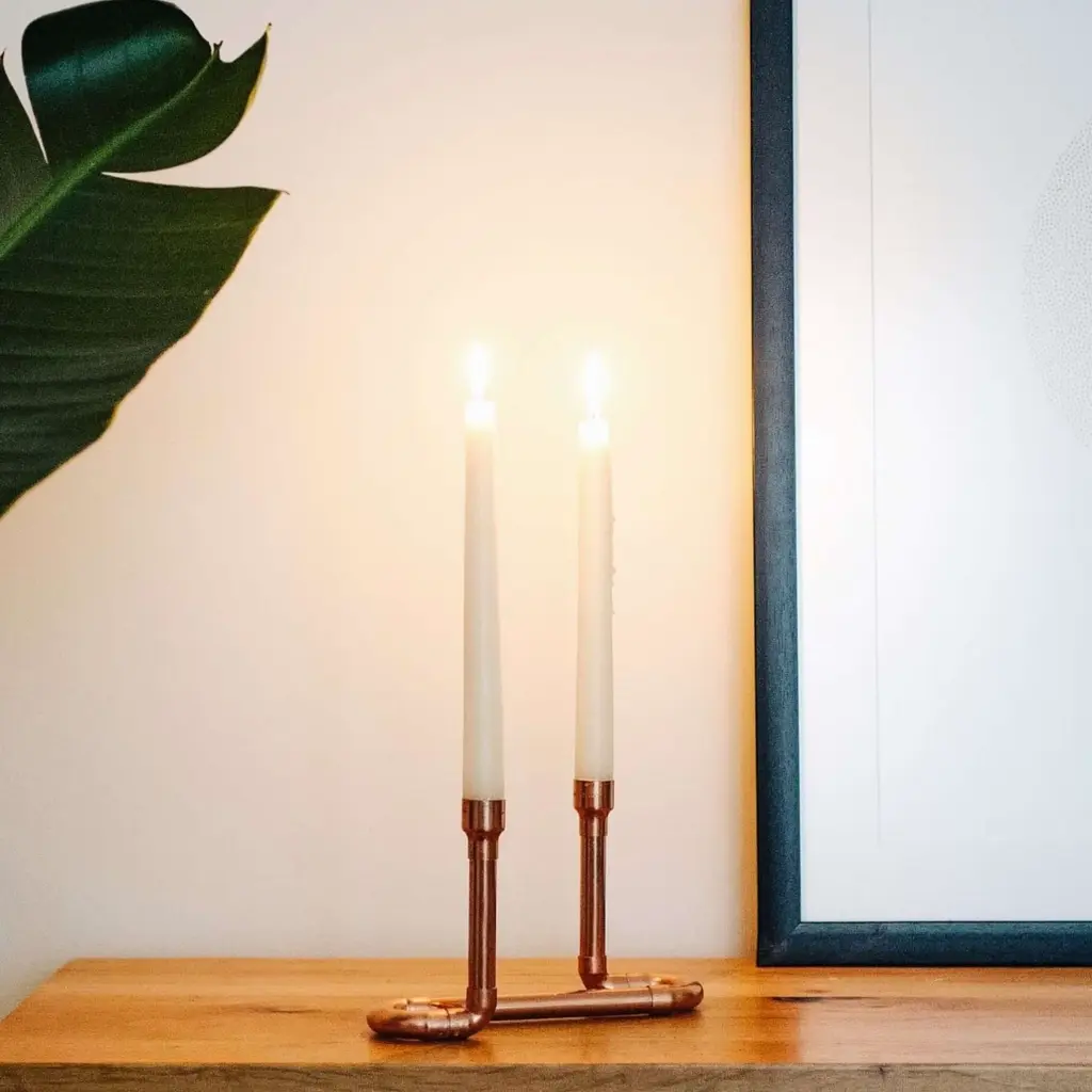 Solid Copper Double Candle Holder