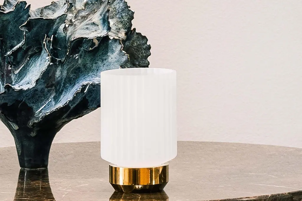 Brass and glass put together is a beautiful combination. This small candle holder hurricanes a sculpted glass fop and vibrant marble base which will will bring a glowing cozy atmosphere in any room.Danish design from Design by UsMaterialTop : GlassBase : Solid brassColor OptionsOpal, Army, SmokeDimensions5.3” H x 3.5” D