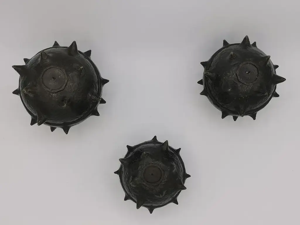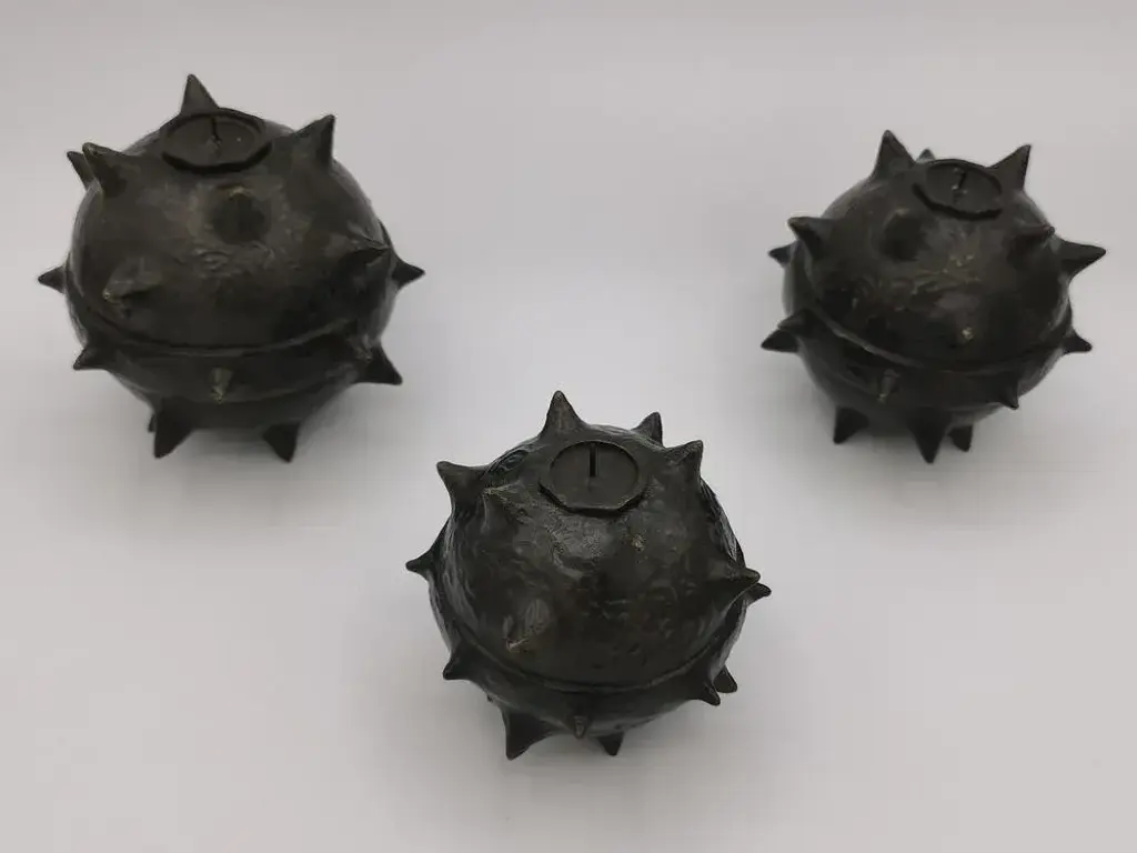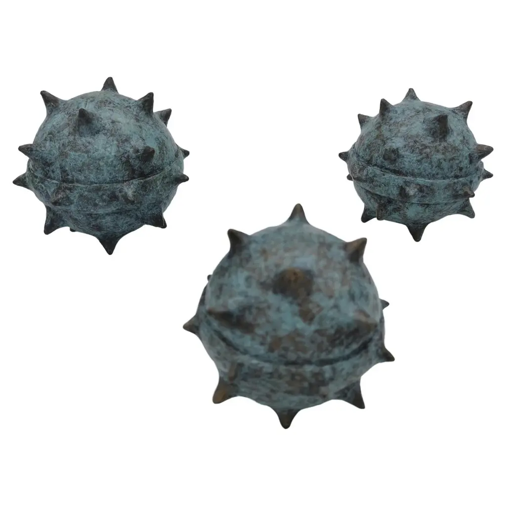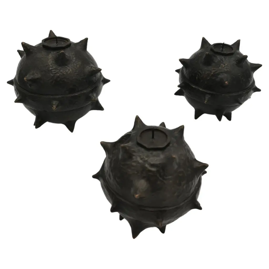 Set of 3 sphaerae candlesticks by emanuele colombi limited edition: 1 out of 12 dimensions: d 8 x h 8cm / d 9 x h 9 cm / d 10 x h 10 cm materials: bronze emanuele colombi is an architect, interiors designer and sculptor who has worked in the past on various projects, from urban projects to art works, passing through architecture and interiors design.