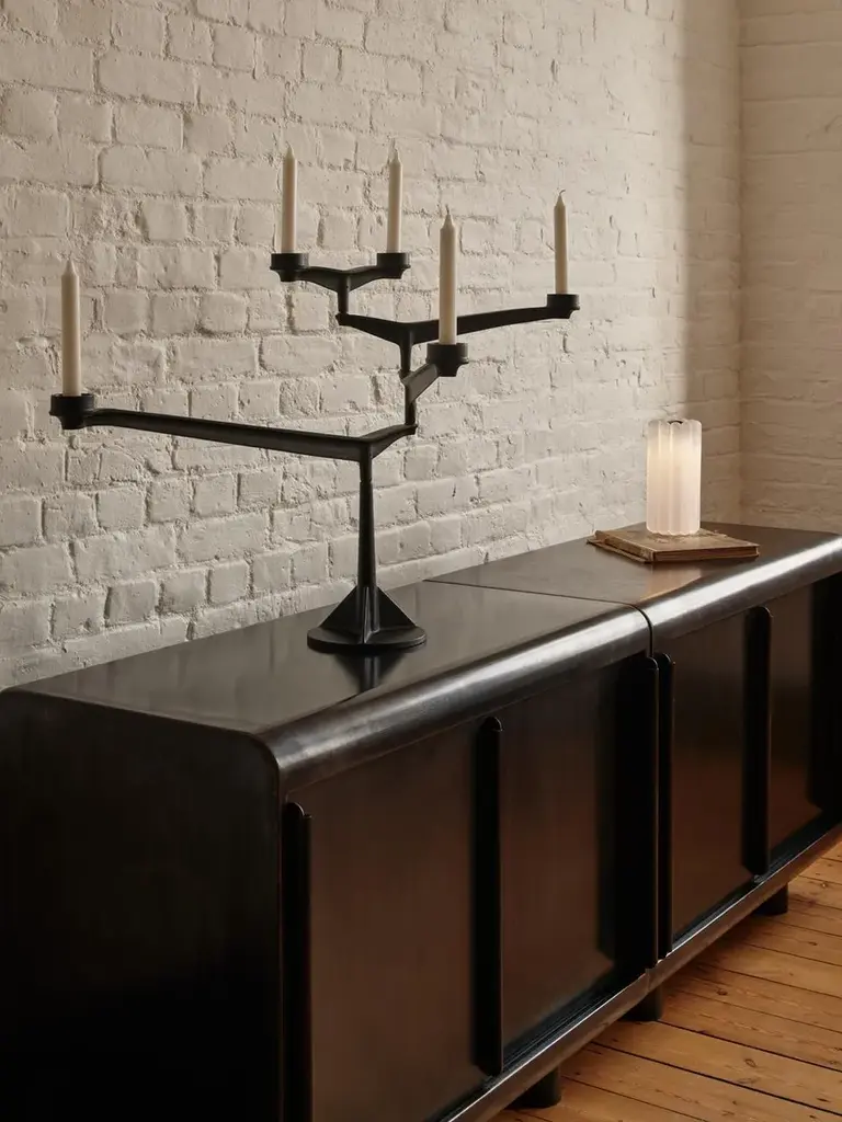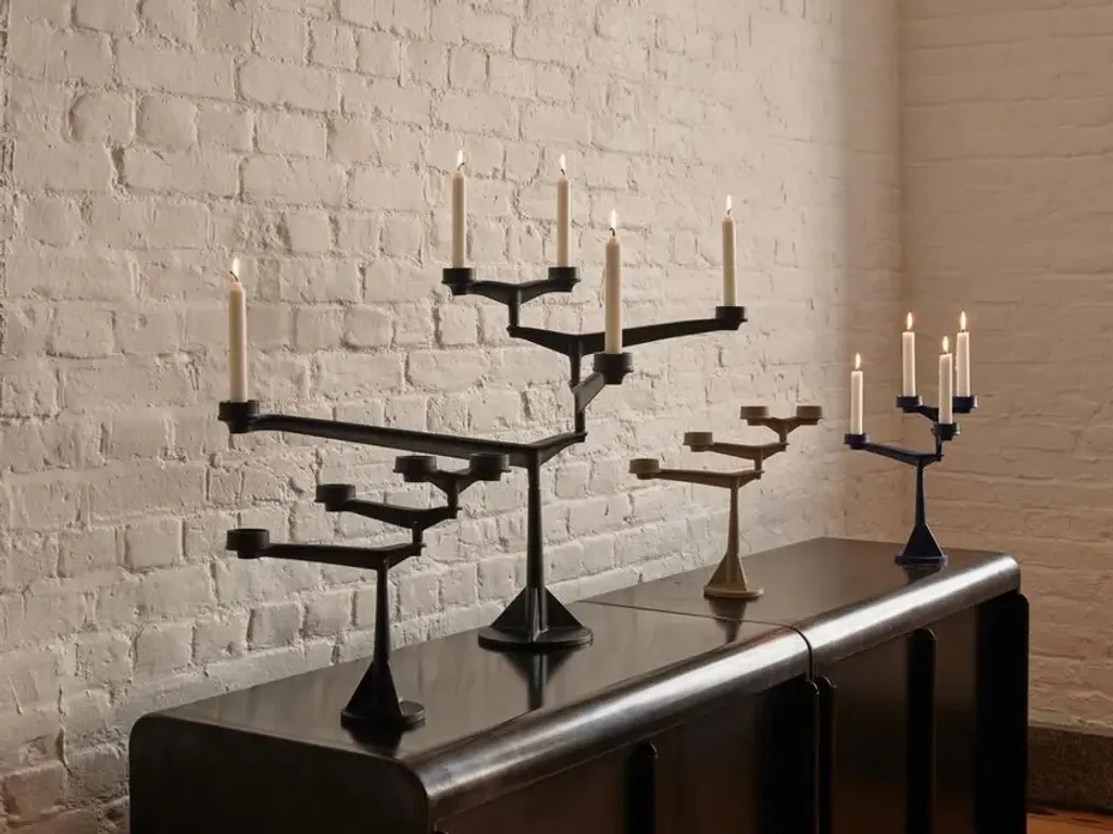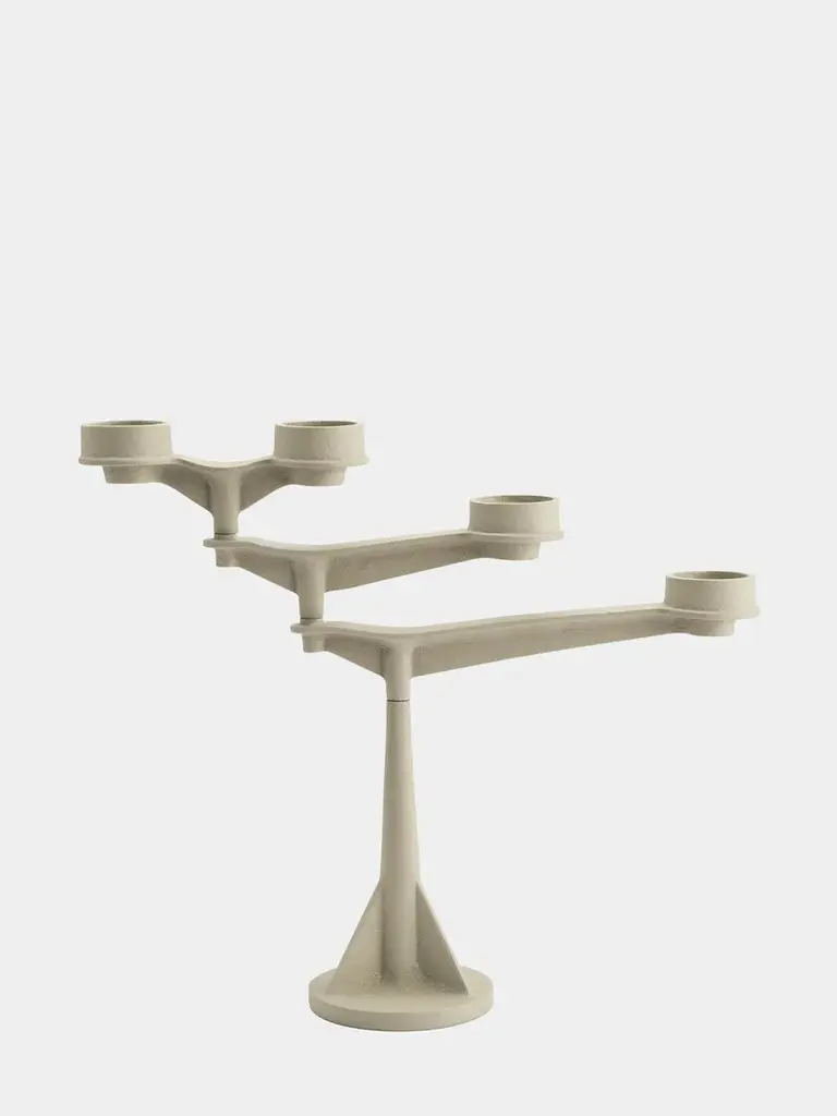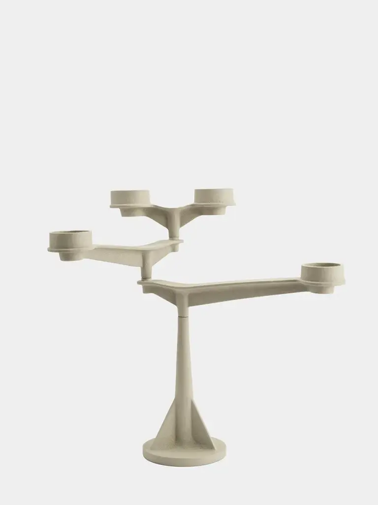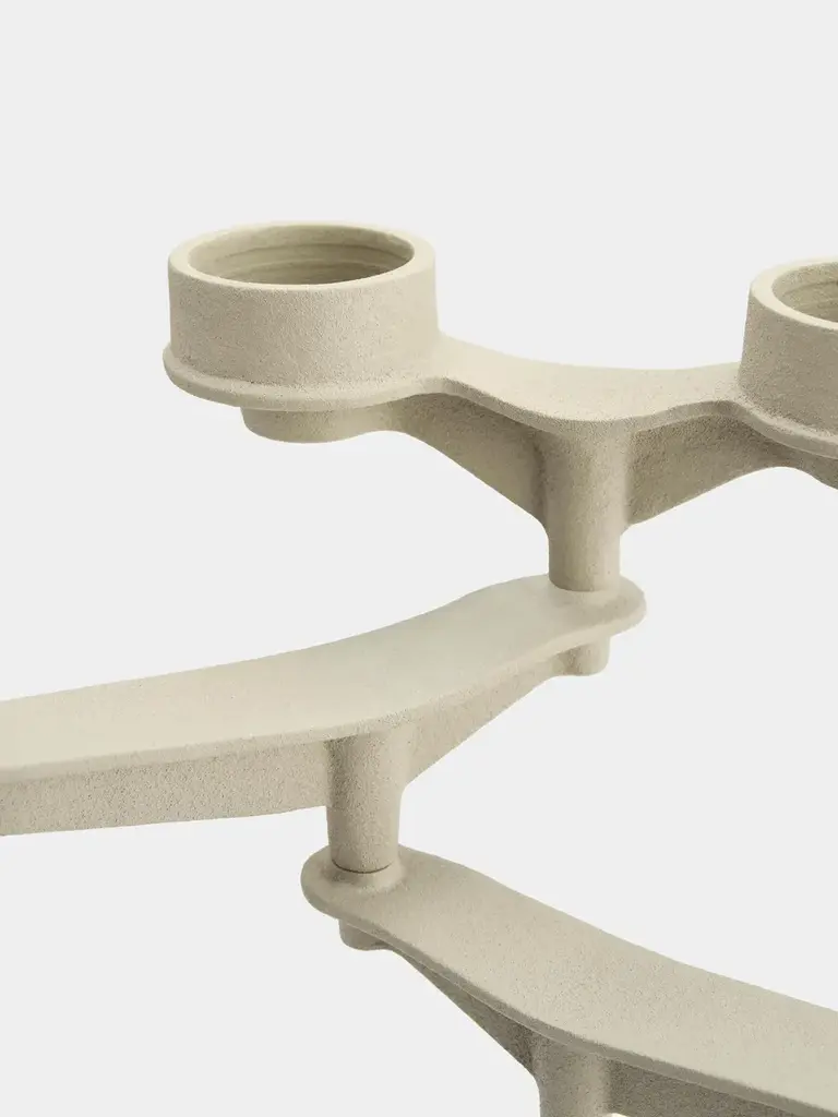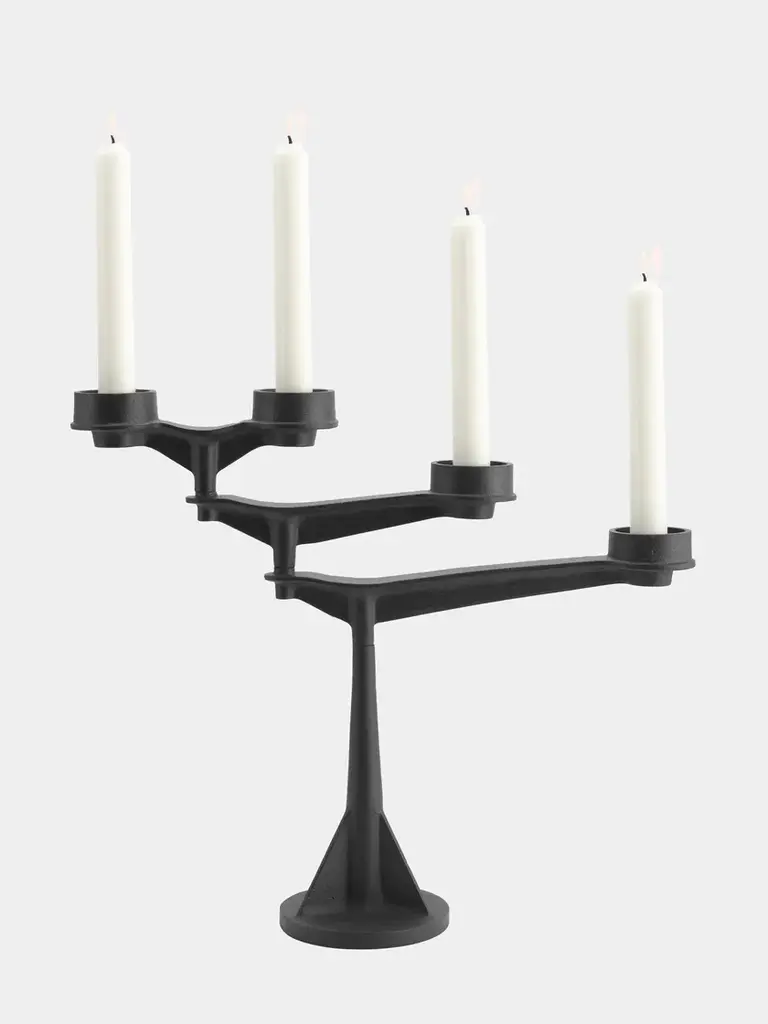 Spin is a candelabrum with rotating arms, made from robust, honest indestructible cast iron. Five candles can be placed on its extending arms.