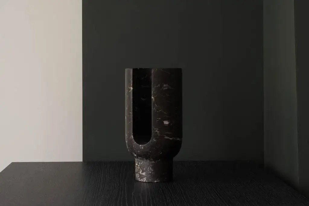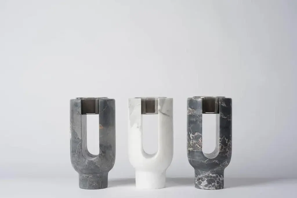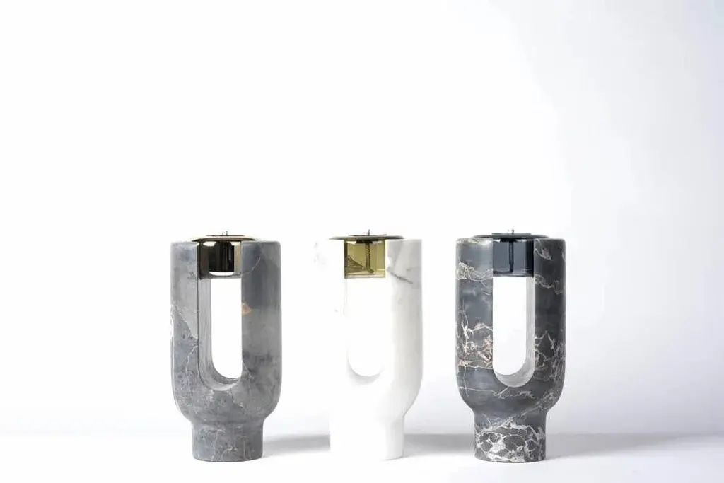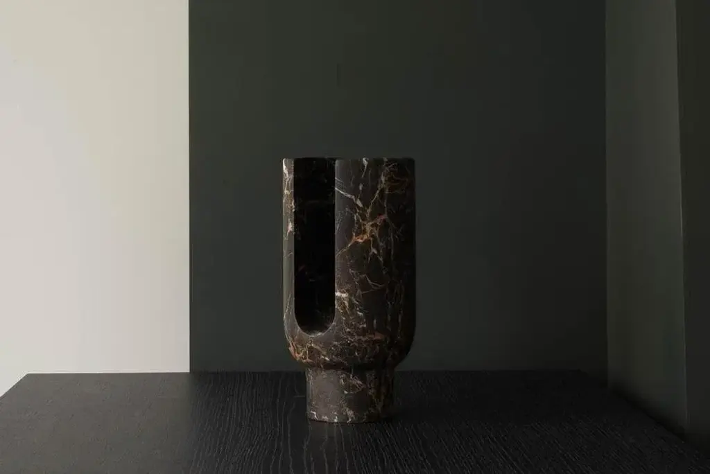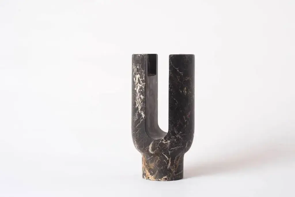 St Laurent Lyra candleholder by Dan Yeffet Dimensions: Ø 143 x H 275 mm Materials: Marble Marble available: Marquina Grey This piece is attributed to the mentioned designer/maker. It has no attribution mark and no official proof of authenticity, however it is well documented in design history. I take full responsibility for any authenticity issues arising from misattribution