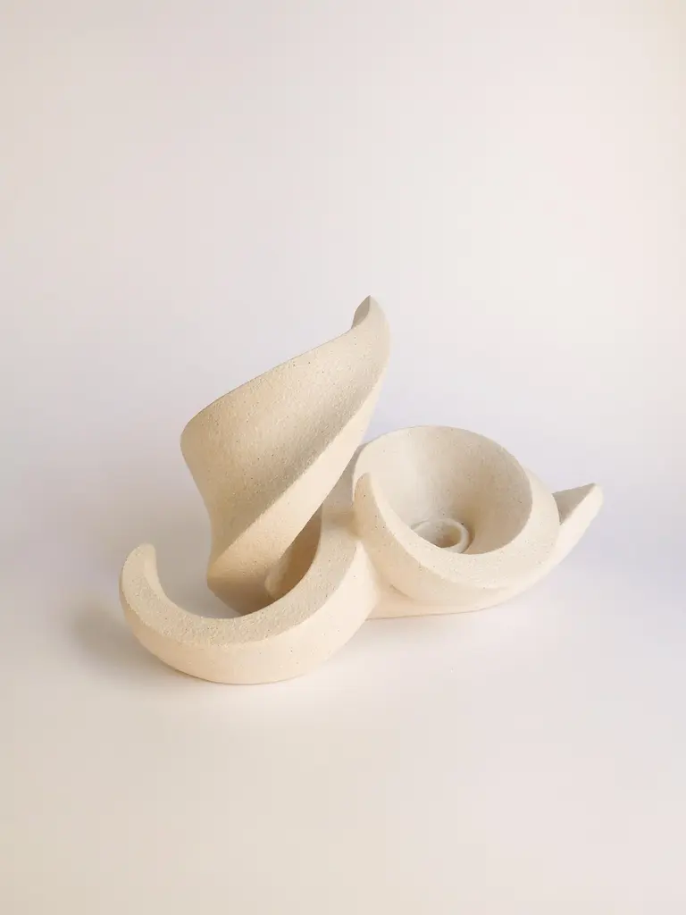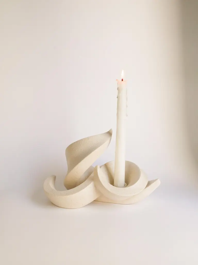 Stoneware Clay, Swan Candleholder by Aleksandra KrasnopolskaDimensions: W 24 x D 14 x H 14 cmMaterials: Stoneware clay. Light glazewash appliedwith an airbrush.Weight: 1,9 kg.Collection: “Ocean”Aleksandra Krasnopolska is a contemporary artist from Odessa, Ukraine. Aleksandra worked as an architect and interior designer before turning to sculpture. When she picked up clay for the first time, she fell in love with the material. "The most amazing thing is how easy and beautiful I did it the first time, how pleasant and facile the clay was," she says. "It was love at first touch!" Krasnopolska's sculptures are biomorphic, seeming to slide and shift as you walk around them. Krasnopolska's work evokes the beautiful female form, as well as the waves of the Black Seas, where Aleksandra draws so much of her inspiration. The sculptures are made using a process that the artist refers to as "flow art." Every piece is a form of meditation.
