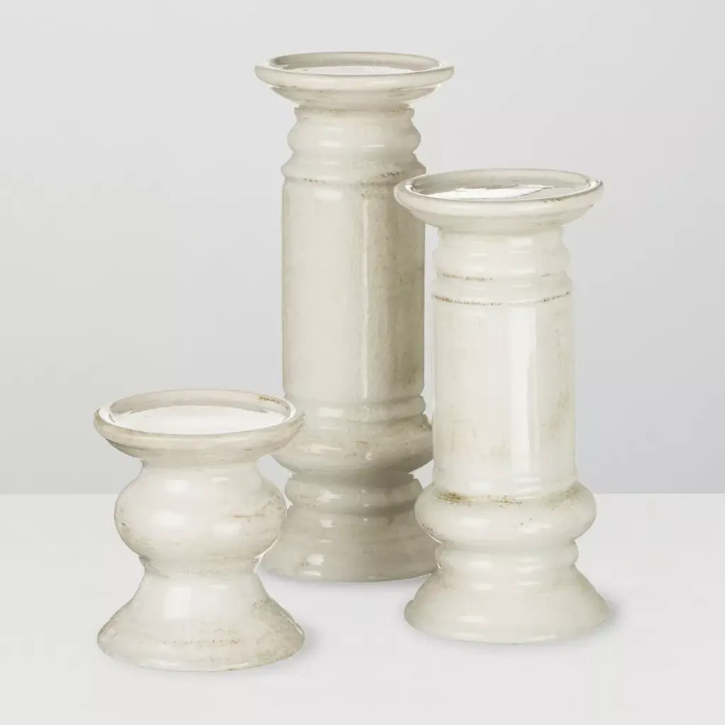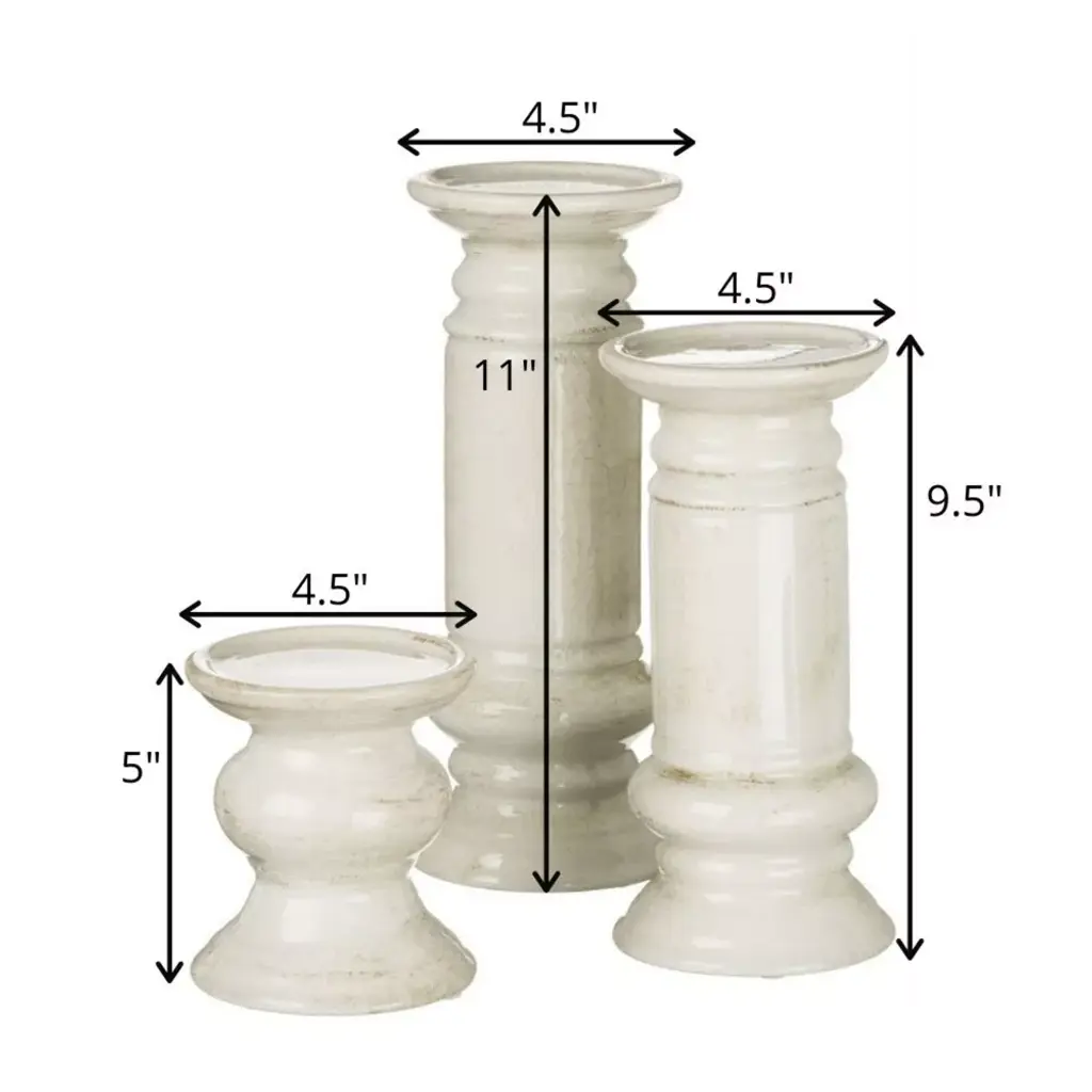 Sullivans Set Of 3 Pillar Ceramic Candle Holders 5"h, 9.5"h & 11"h White