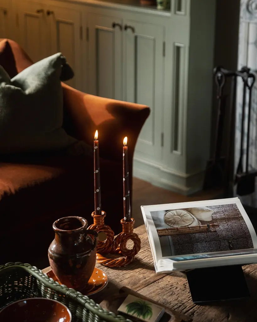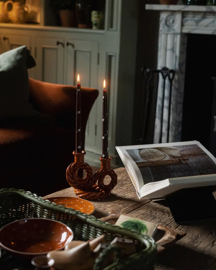 What a beautiful way to add romance and atmosphere to the evening: our Tallitha candle holder is crafted by hand, twisting and moulding the clay into a rope-inspired silhouette. Pair with our hand-painted taper dinner candles. Candles sold separately.Height: 15cm Width: 18cmHeight: 6" Width: 7"Dishwasher safe.