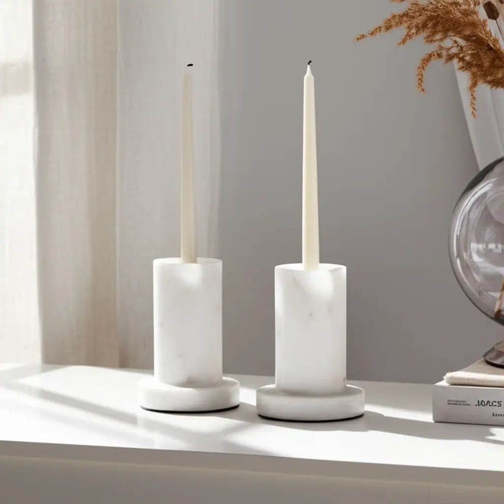 Elevate your space with this modern pillar and taper candle holder crafted from premium stone and marble for a luxurious, long-lasting touch. Designed to complement contemporary decor styles, its sleek minimalist design blends effortlessly into home, office, bedroom, or living room settings. Ideal for those seeking consistent style and upscale home accents, this candle holder adds warmth and ambiance while making a statement with its refined simplicity. The durable marble construction offers both function and elegance, making it a versatile accent piece that stands the test of time. Whether displayed alone or in pairs, it brings sophistication to any surface or centerpiece arrangement. Add this modern decor essential to your collection and transform everyday moments into visually stunning experiences. Order now to bring timeless elegance and lasting style to your space.