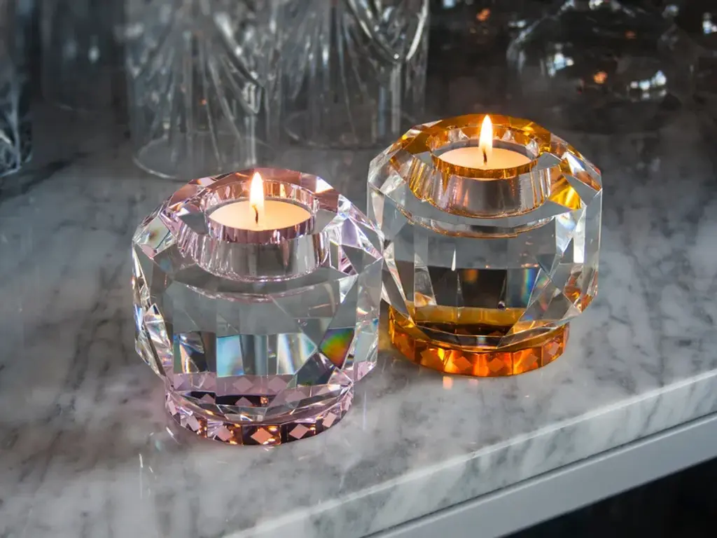 The Reflections Copenhagen t-light holder Texas clear/rose is a stunning combination of art and function. Accentuate the natural beauty of light with the Reflections Copenhagen tea light candle holders. Each elegant t-light holder combines the intricate detailing of Reflections Copenhagen signature geometric shapes and wedges cuts with the comforting weight and stability of Reflections Copenhagen's hand-crafted, fine crystal.Material: CrystalTEXAS by REFLECTIONS is a handcrafted tea light holder made from crystal.