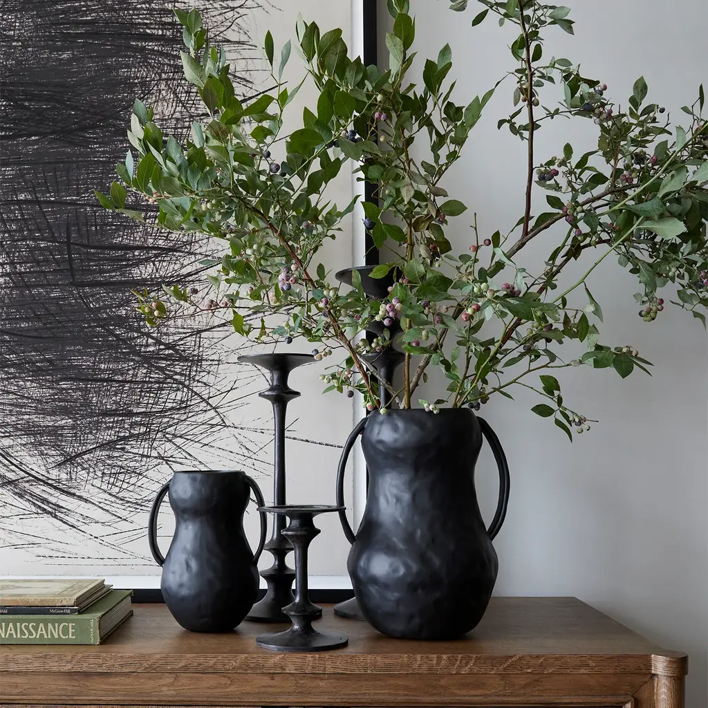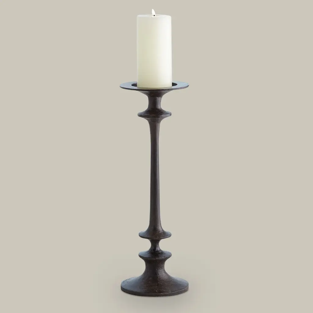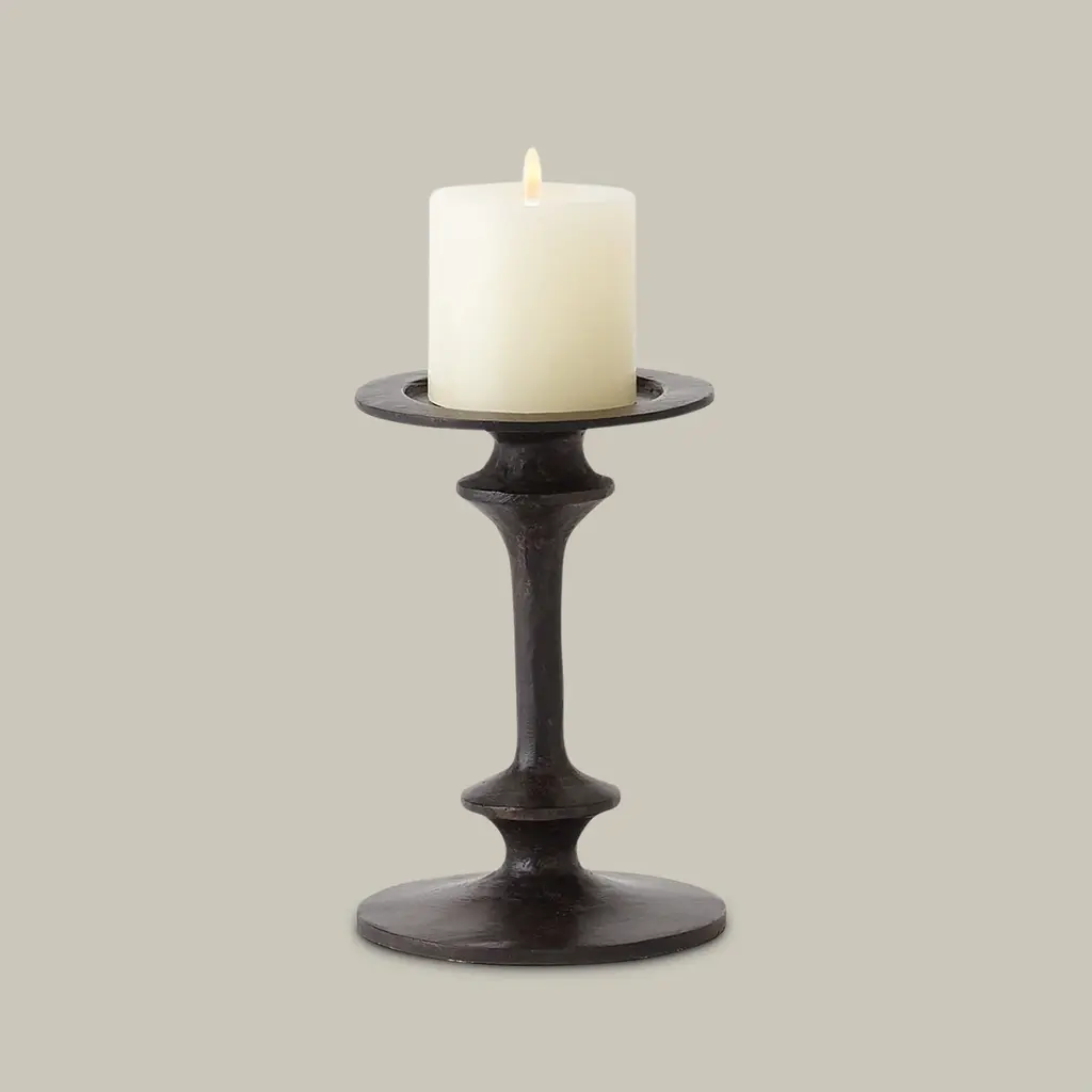 The Théophile Candle Holders embody a timeless form with an artisanal hand. Crafted with meticulous attention to detail, its sturdy and hand-forged construction showcases the beauty of skilled craftsmanship. The dark finish adds a touch of depth, allowing the candlelight to create a warm and inviting ambiance, making it a perfect addition.