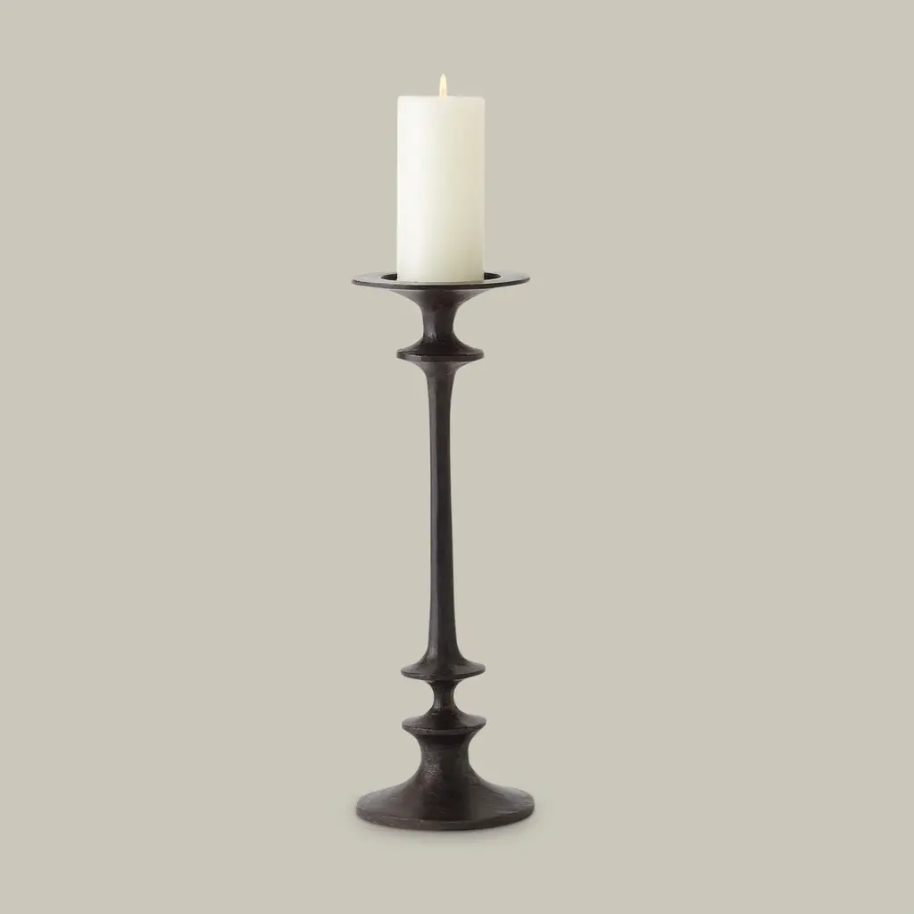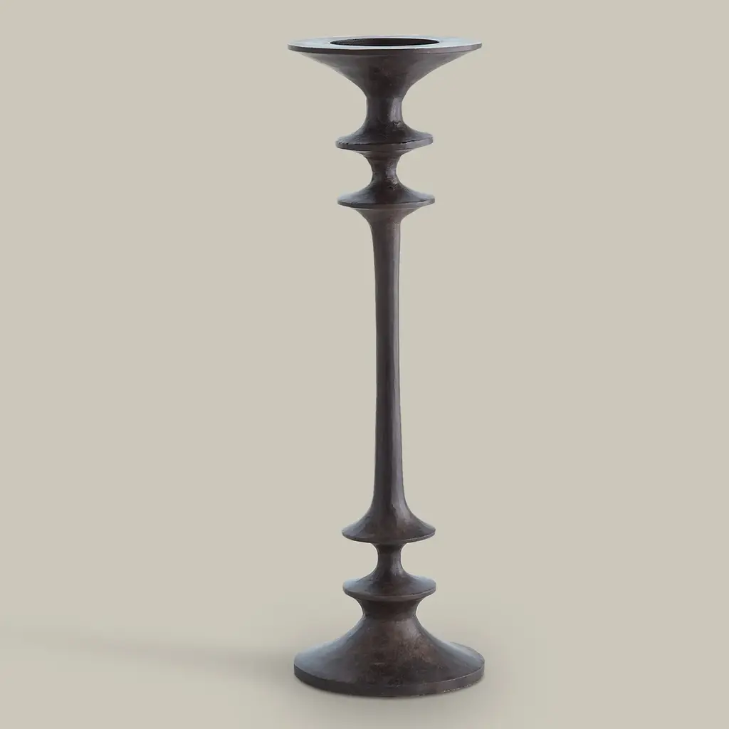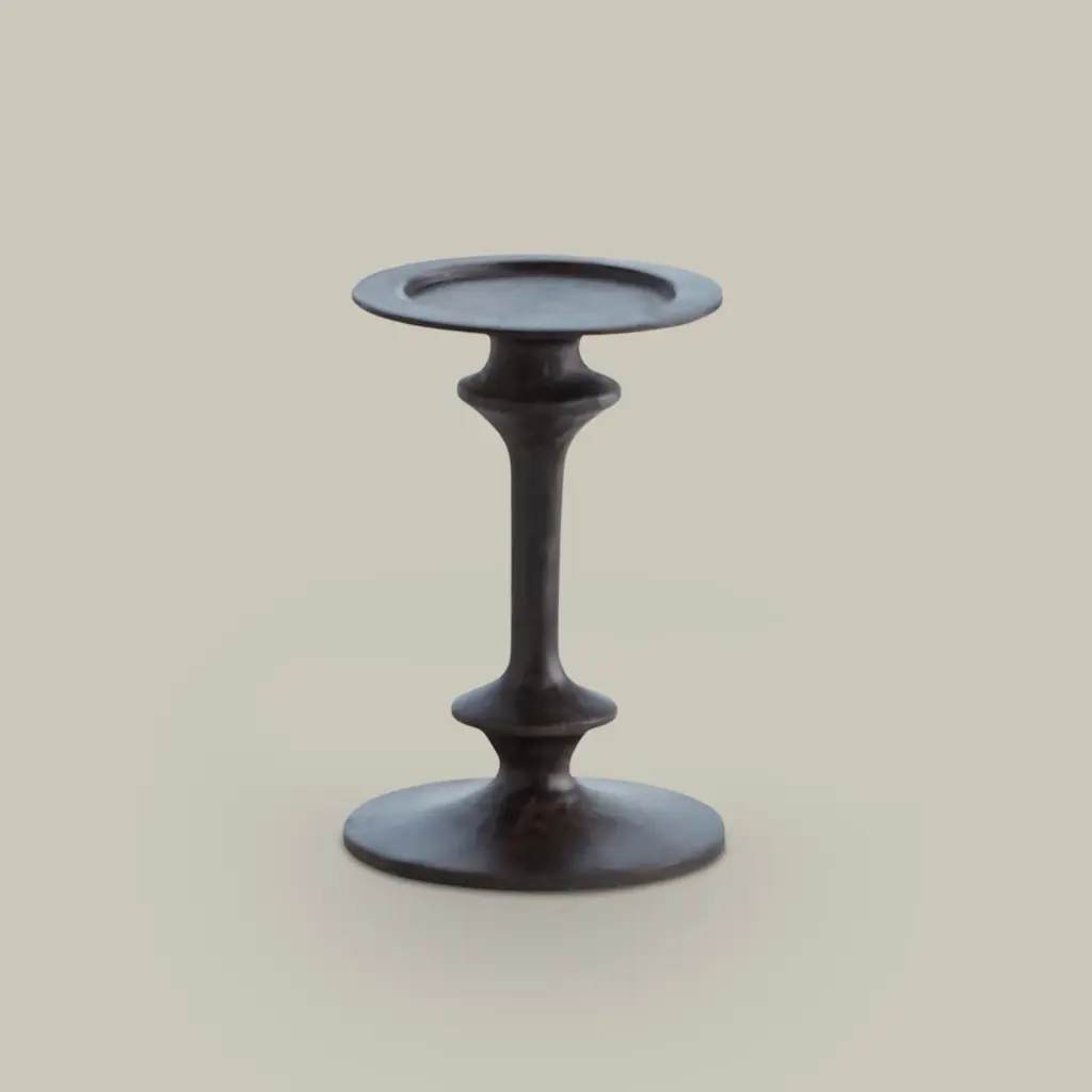 The Théophile Candle Holders embody a timeless form with an artisanal hand. Crafted with meticulous attention to detail, its sturdy and hand-forged construction showcases the beauty of skilled craftsmanship. The dark finish adds a touch of depth, allowing the candlelight to create a warm and inviting ambiance, making it a perfect addition.