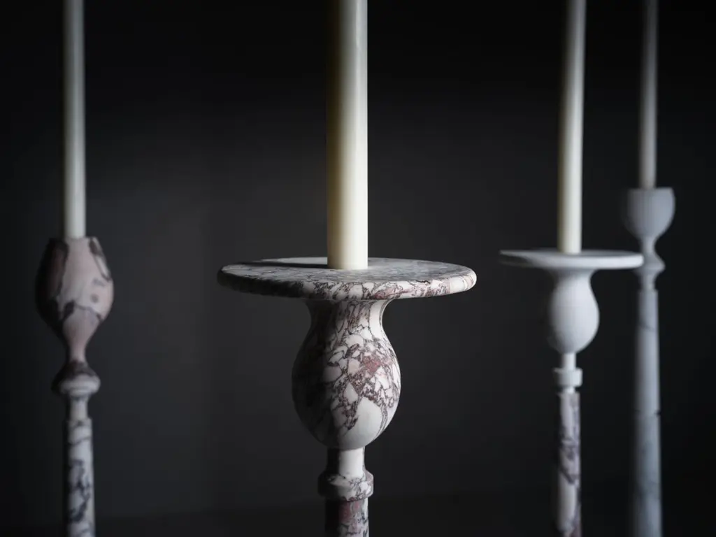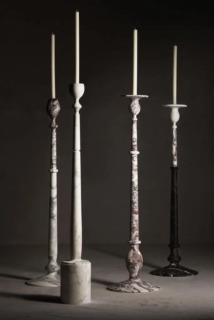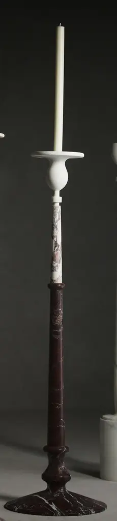 Treasure L Candlestick by Kreoo Designed by Christophe PilletDimensions: Ø 43 x H 154 cm.Materials: Arabescato, Breccia Medicea, and Rosso Lepanto marbles.Available in different marble options. Available in four different sizes. Please contact us.Treasure is a composition of shapes and colors. The collection comprises four slender candlesticks that alternate elegantly sculpted portions and are molded in marble according to different designs, creating an iridescent and precious furnishing item. Imagined as a freestanding complement, approximately 150 cm high, they are meant to be placed in living and bedroom spaces, as well as in wellness areas or outdoor settings, where candles warm up the charm of the atmosphere. Customizable in a wide selection of marbles, in a mix of hues, veins, and softly crafted details, the different variants of Treasure can also be selected in monochromatic versions and made from a single type of natural stone.Kreoo: the new marble experienceKreoo links its name to the best Italian tradition in marble manufacturing and brings to new light the primordial charm of a material that has witnessed the evolution of civilizations and cultures.From the bathroom and living room to coverings, home accessories, and lamps, the company works with natural stone in various forms and aesthetic compositions, enriching it with other materials such as metals, wood, and glass. The result is a fascinating and chromatic language, suitable both indoors and outdoors. Expressed in contemporary but still customizable designs, Kreoo highlights workmanship know-how and excellence.The brand, born in 2010 by the experience of Decormarmi and its worldwide distribution strength, has led to major international projects, especially in hospitality and luxury residential.