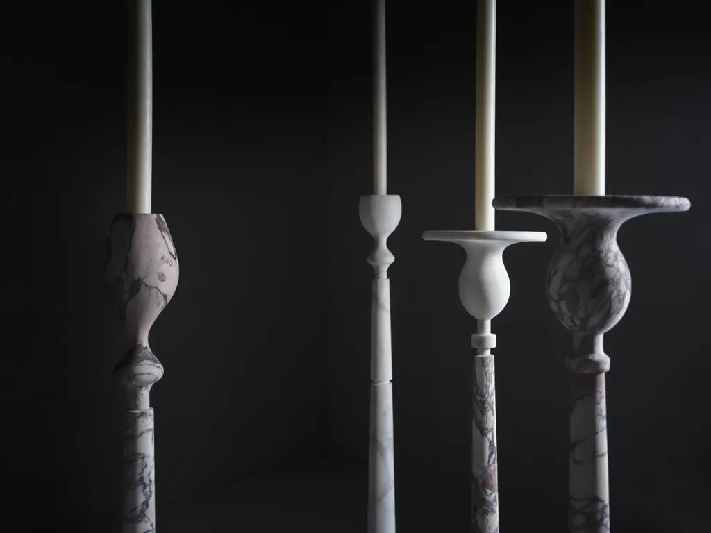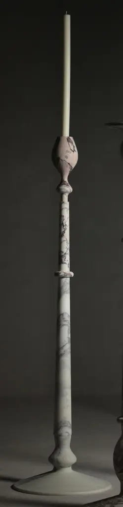 Treasure S Candlestick by Kreoo Designed by Christophe PilletDimensions: Ø 43 x H 153 cm.Materials: Arabescato, Breccia Medicea, and Rosso Lepanto marbles.Available in different marble options. Available in four different sizes. Please contact us.Treasure is a composition of shapes and colors. The collection comprises four slender candlesticks that alternate elegantly sculpted portions and are molded in marble according to different designs, creating an iridescent and precious furnishing item. Imagined as a freestanding complement, approximately 150 cm high, they are meant to be placed in living and bedroom spaces, as well as in wellness areas or outdoor settings, where candles warm up the charm of the atmosphere. Customizable in a wide selection of marbles, in a mix of hues, veins, and softly crafted details, the different variants of Treasure can also be selected in monochromatic versions and made from a single type of natural stone.Kreoo: the new marble experienceKreoo links its name to the best Italian tradition in marble manufacturing and brings to new light the primordial charm of a material that has witnessed the evolution of civilizations and cultures.From the bathroom and living room to coverings, home accessories, and lamps, the company works with natural stone in various forms and aesthetic compositions, enriching it with other materials such as metals, wood, and glass. The result is a fascinating and chromatic language, suitable both indoors and outdoors. Expressed in contemporary but still customizable designs, Kreoo highlights workmanship know-how and excellence.The brand, born in 2010 by the experience of Decormarmi and its worldwide distribution strength, has led to major international projects, especially in hospitality and luxury residential.