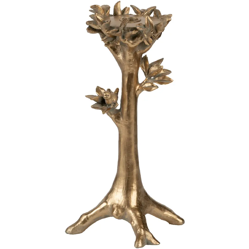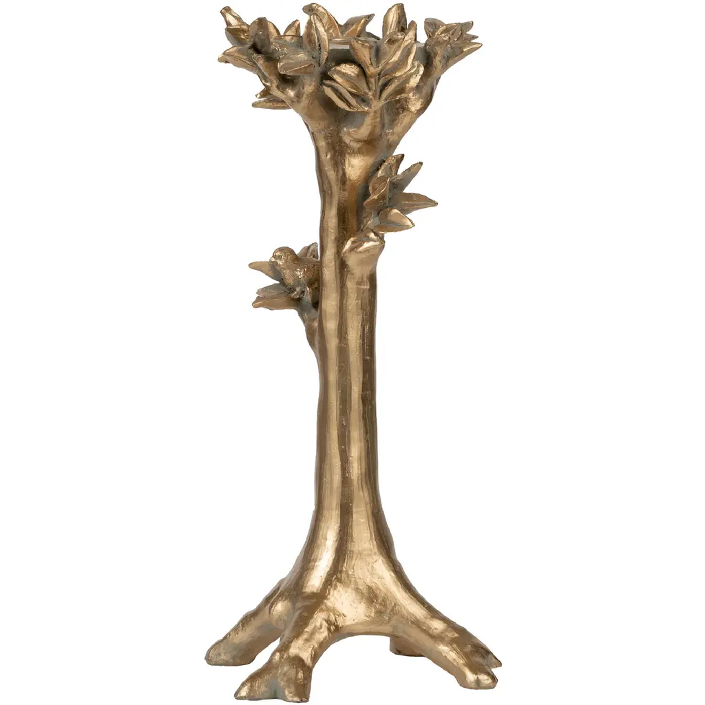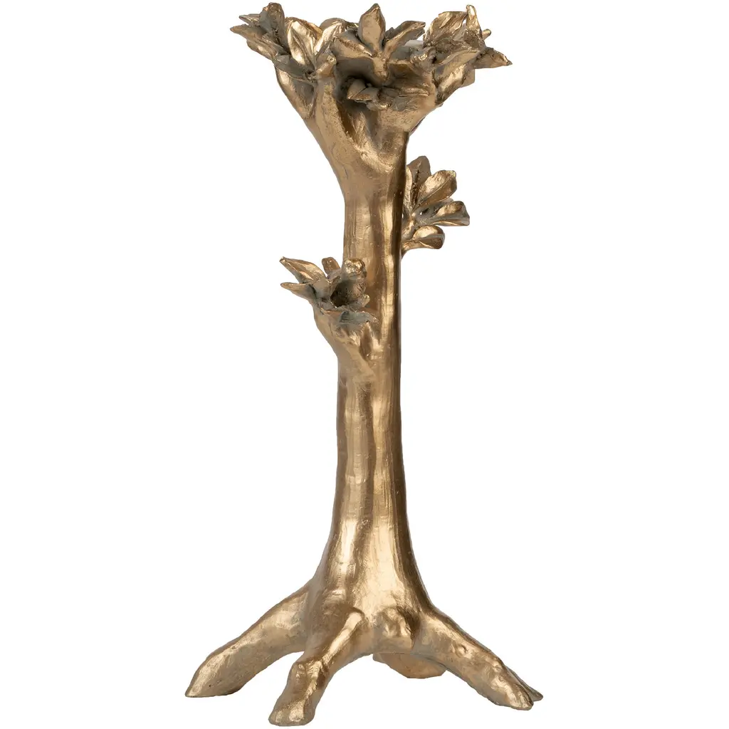 Revel in the warm glow of candlelight with this 13? Tree Candleholder featuring a delicate tree design bathed in a lavish gold finish. Blending a glamorous finish with natural beauty, this piece complements a variety of styles from vintage to contemporary. Create an elegant tablescape by combining multiple candleholders with opulent floral arrangements that perfectly suit your space.
