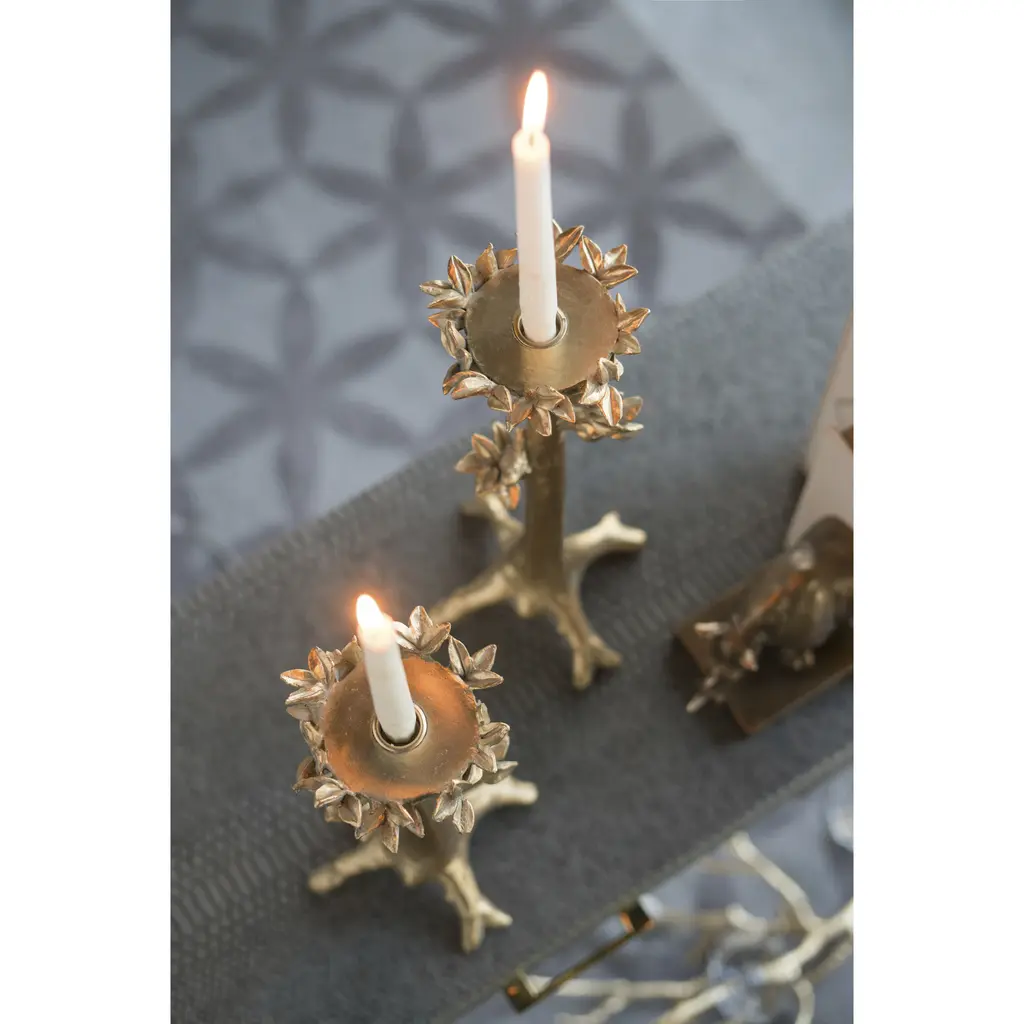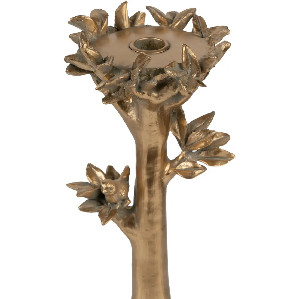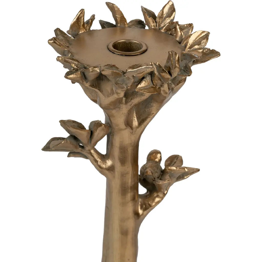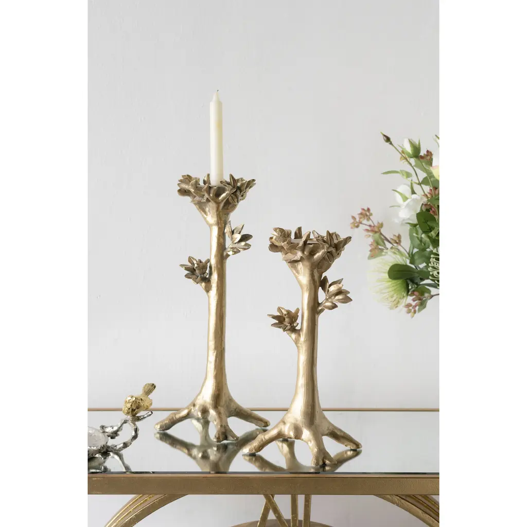 Revel in the warm glow of candlelight with this 13? Tree Candleholder featuring a delicate tree design bathed in a lavish gold finish. Blending a glamorous finish with natural beauty, this piece complements a variety of styles from vintage to contemporary. Create an elegant tablescape by combining multiple candleholders with opulent floral arrangements that perfectly suit your space.