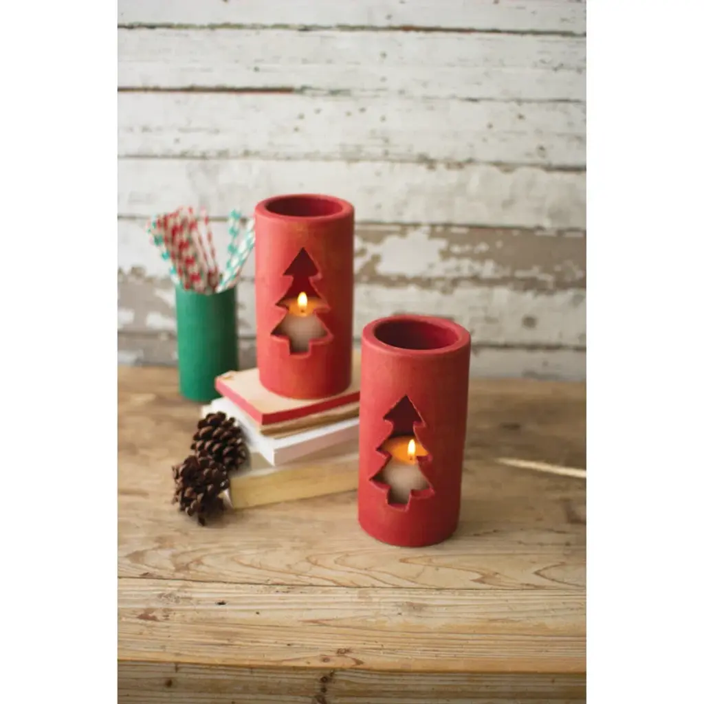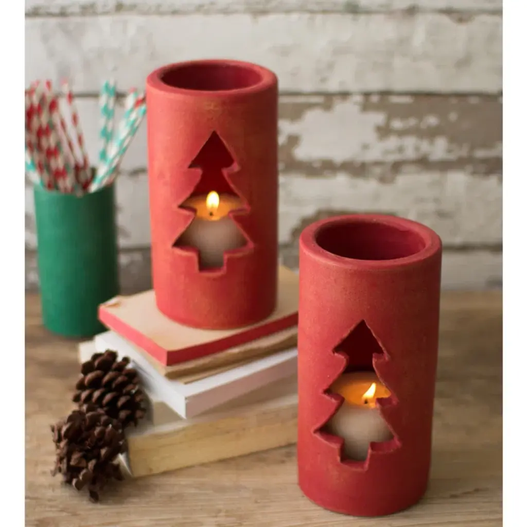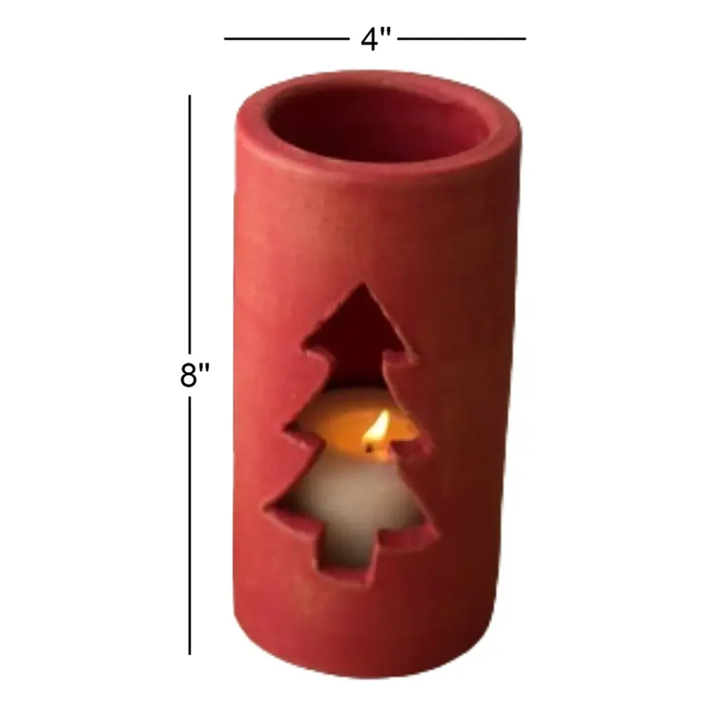 Clay luminaries are the best way to complete any holiday tables cape or mantel. The red clay with cut out Christmas tree adds a festive holiday touch to any décor.