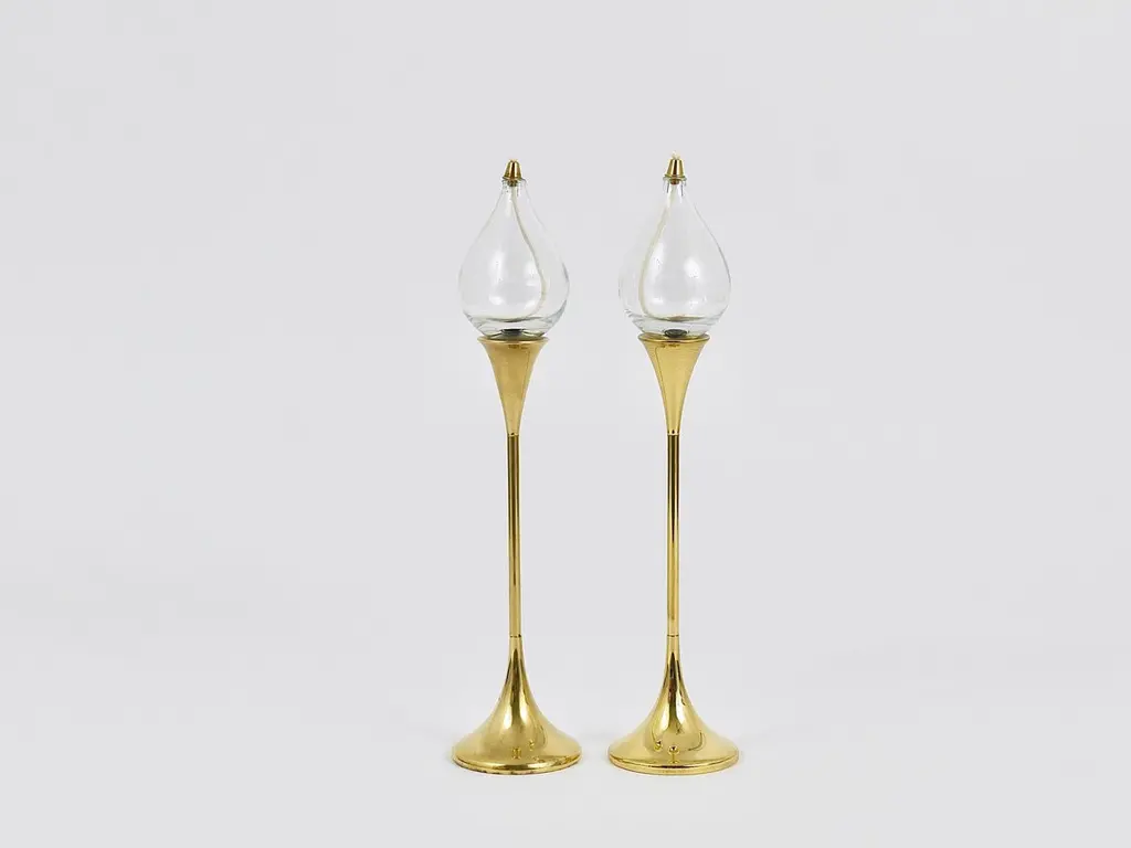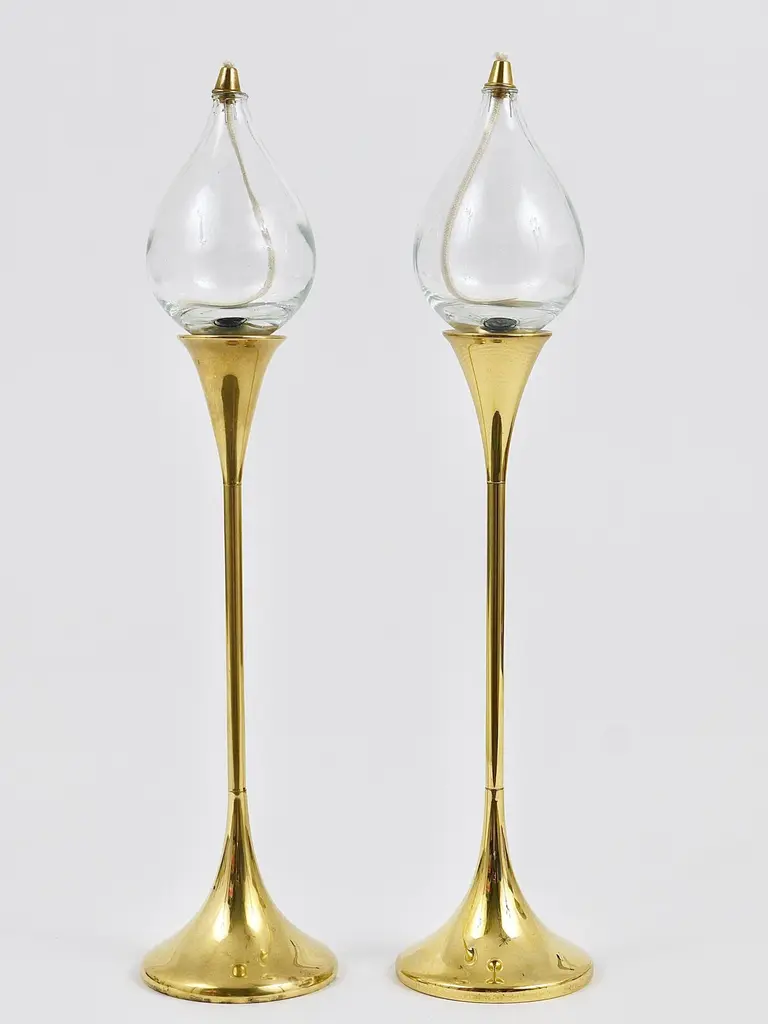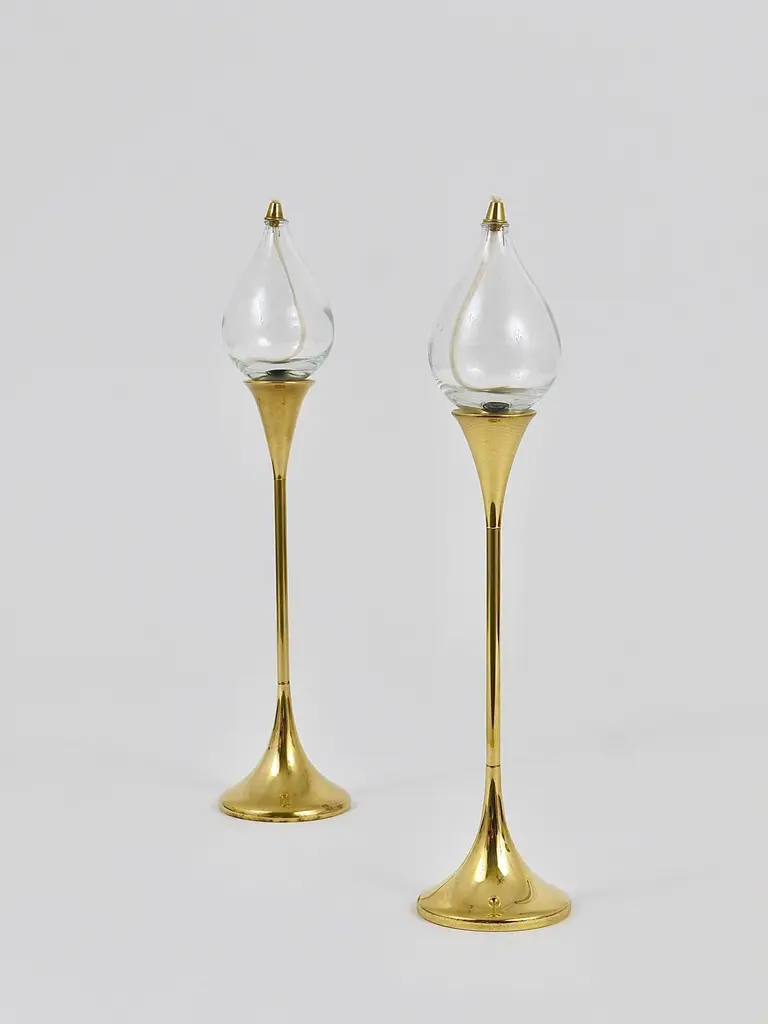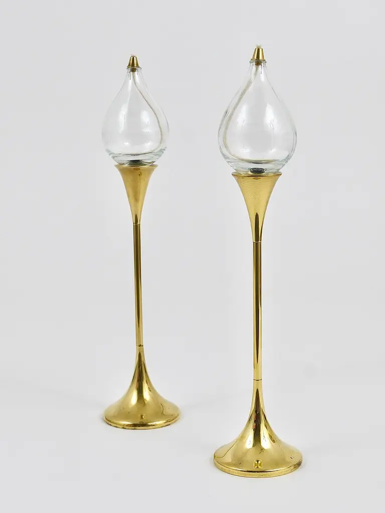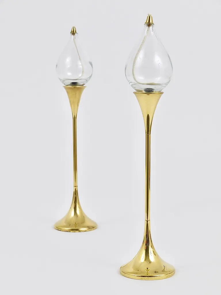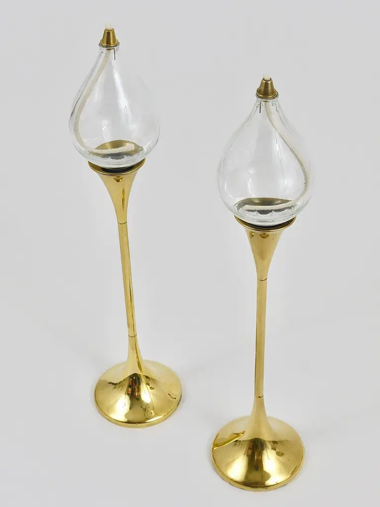 Two Large Freddie Andersen Midcentury Oil Lamp Candleholders, Denmark, 1970s
