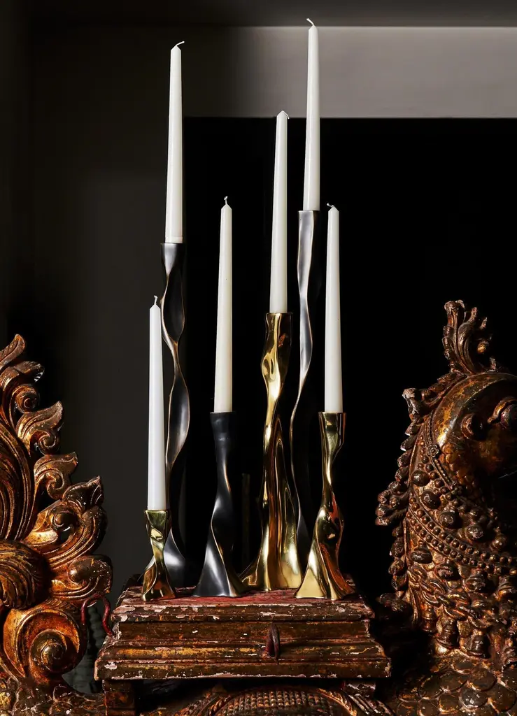 Under The Banyan Bronze Candle Stand Large In Brass, Viya By Vikram Goyal