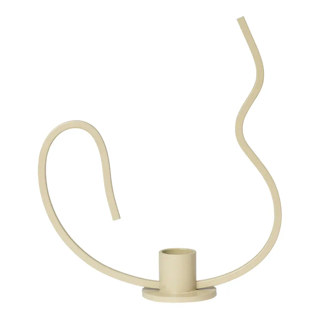 As if frozen mid-dance, the Valse Candle Holder has a fluid and wavy form. Taking inspiration from the graceful movements of the Waltz dance, this piece is crafted from powder-coated iron and has an elegant shape, featuring a curved metal rod that invites you to hold and move the candle holder around with you. Make sure to extinguish the candle before it reaches the edge of the candle holder. Never leave a lit candle out of sight.