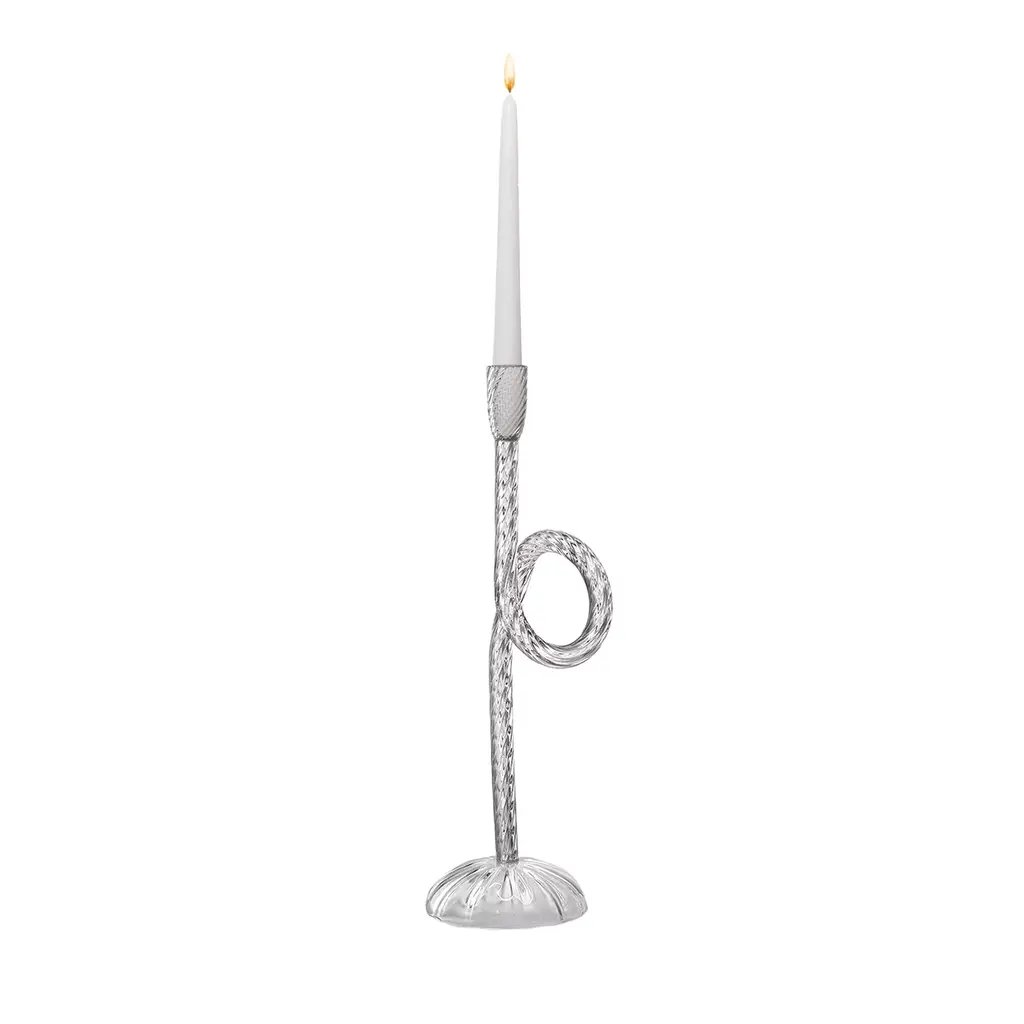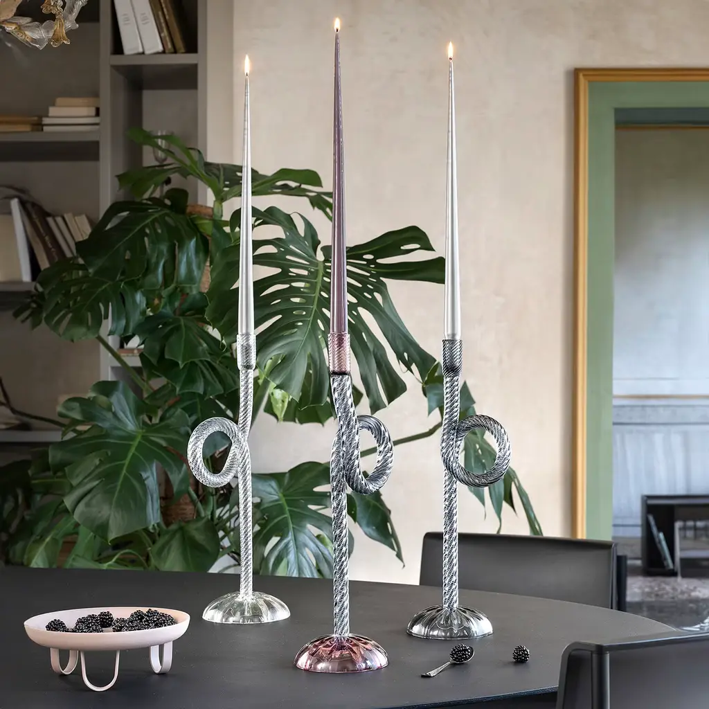 Aina Kari pays tribute to the Venetian Lagoon city. The Knots and ropes are part of Venetian everyday life, this original and contemporary candlestick holder highlights the expertise to twist the blown glass at 360 degrees.