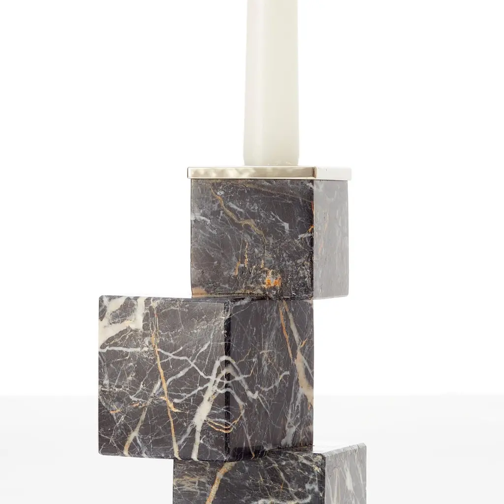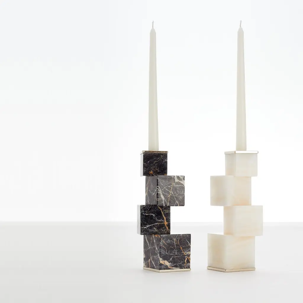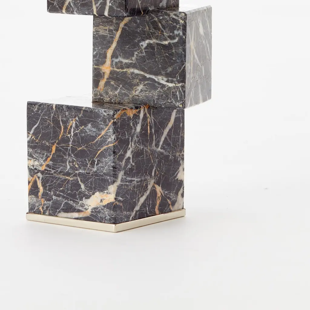 A composition of onyx with alpaca metal. Inspired by the pure and essential lines of a structure of solid stones, with a vertigo stability.Our pieces are made by hand. One of a kind.All natural stones may vary in color.