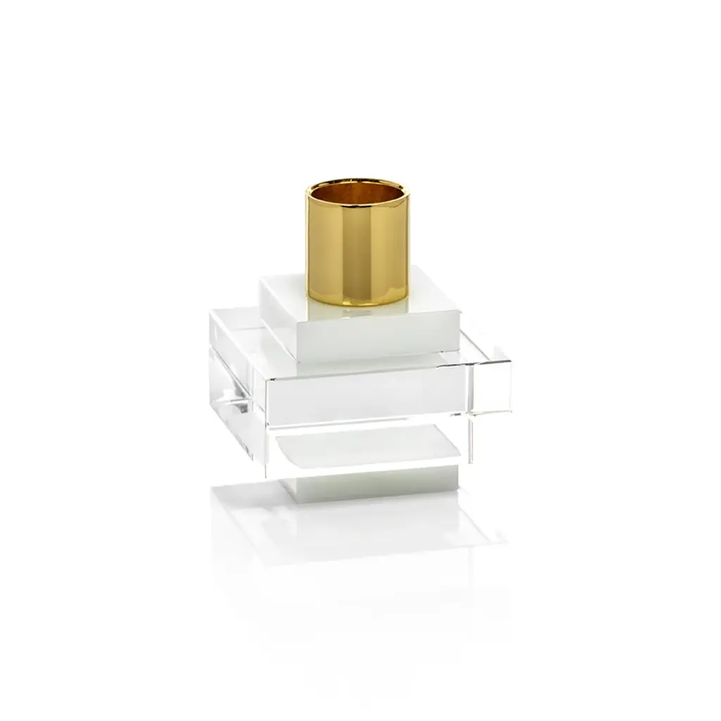 Vianna Square Crystal Candle Holder In White