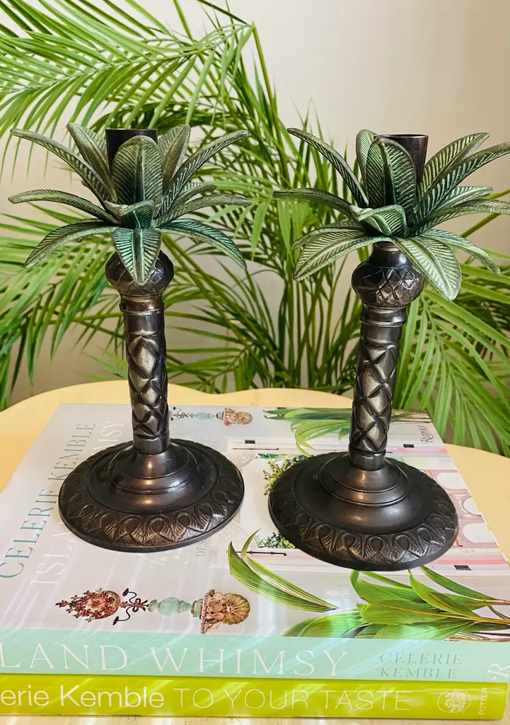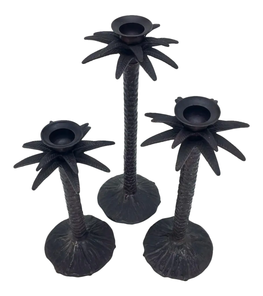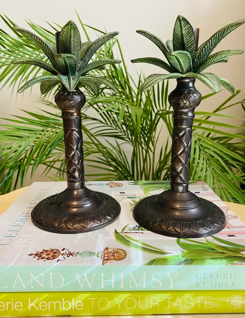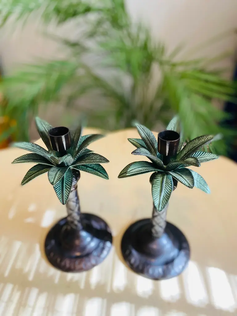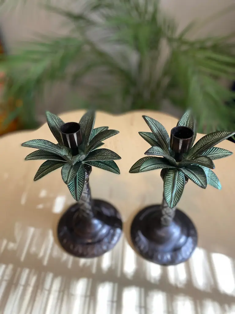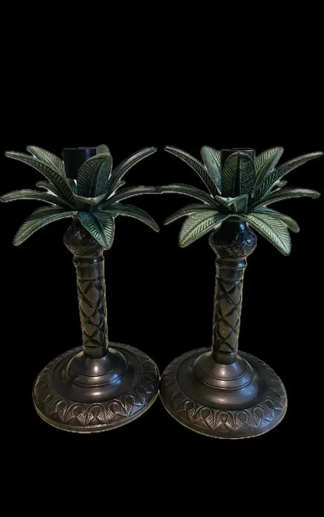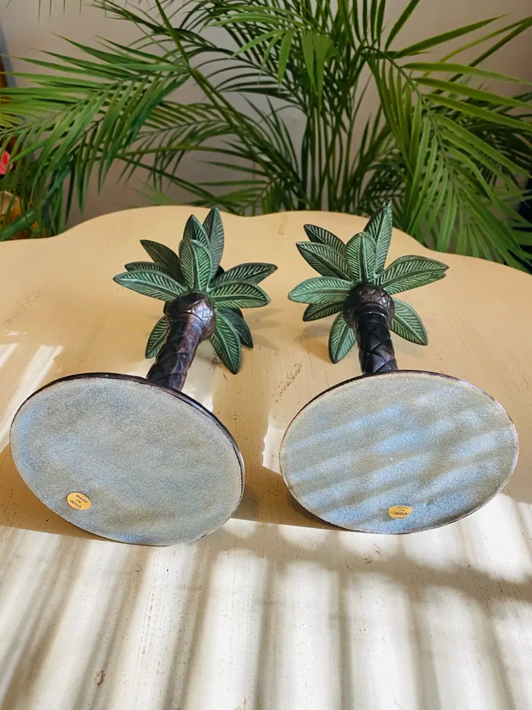 A great vintage set of palm trees candle holders. Fabulous centerpiece to any decor perfect touch for your summer entertaining. Featuring a brown tree trunk and a beautiful green palm fronds the perfect Palm Beach style.