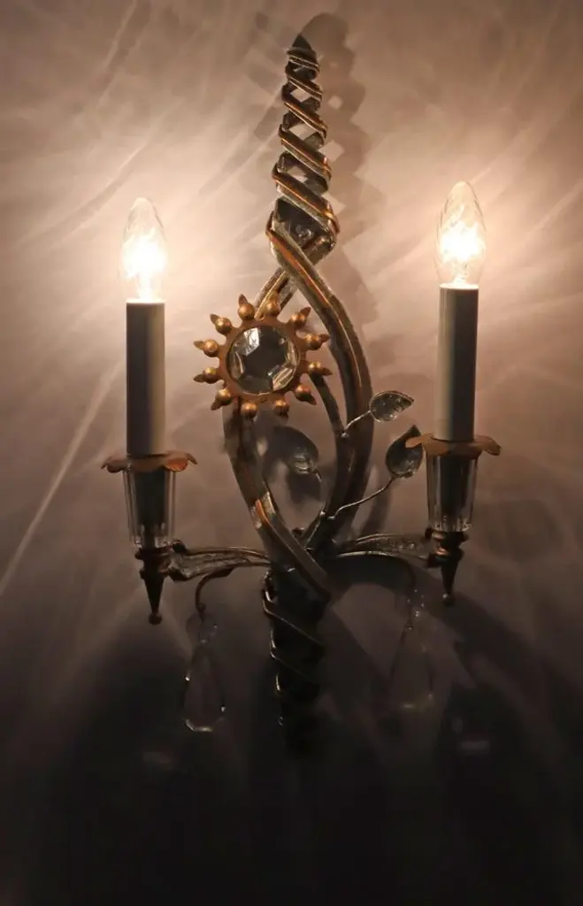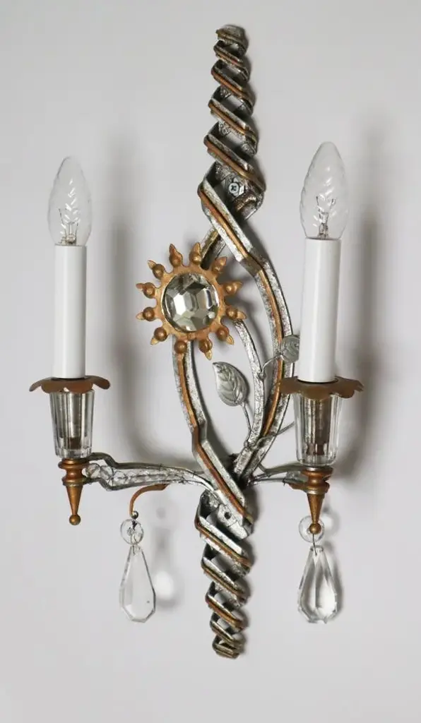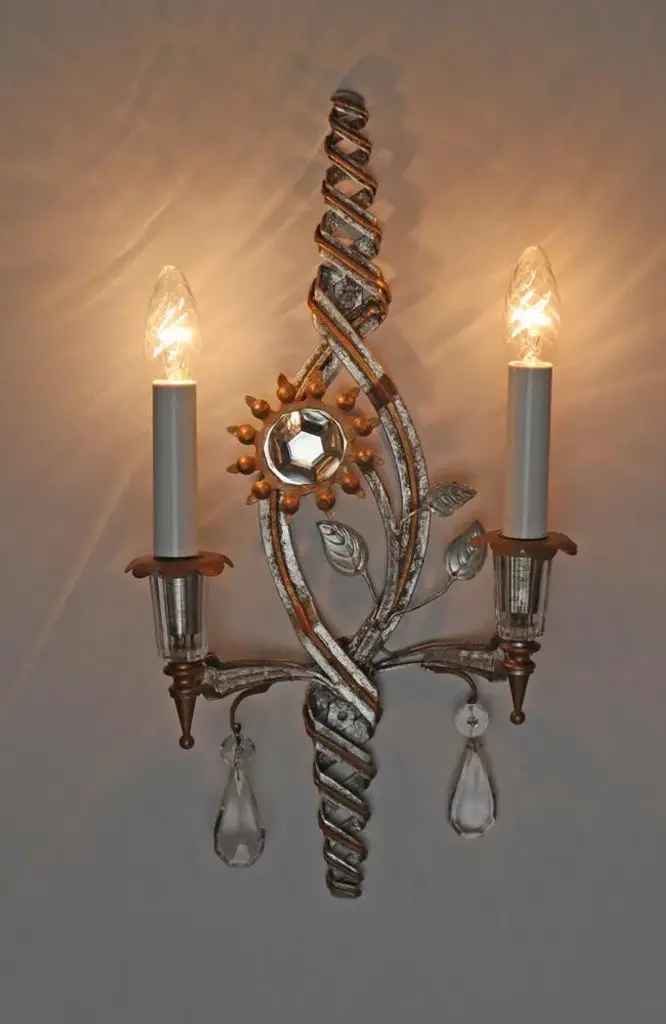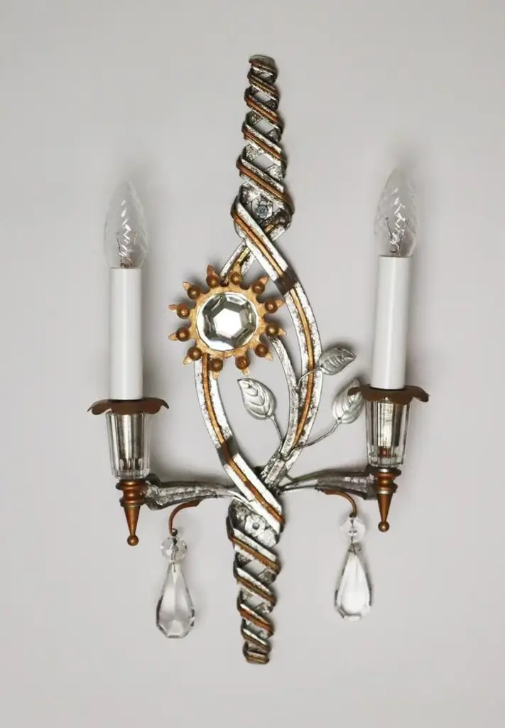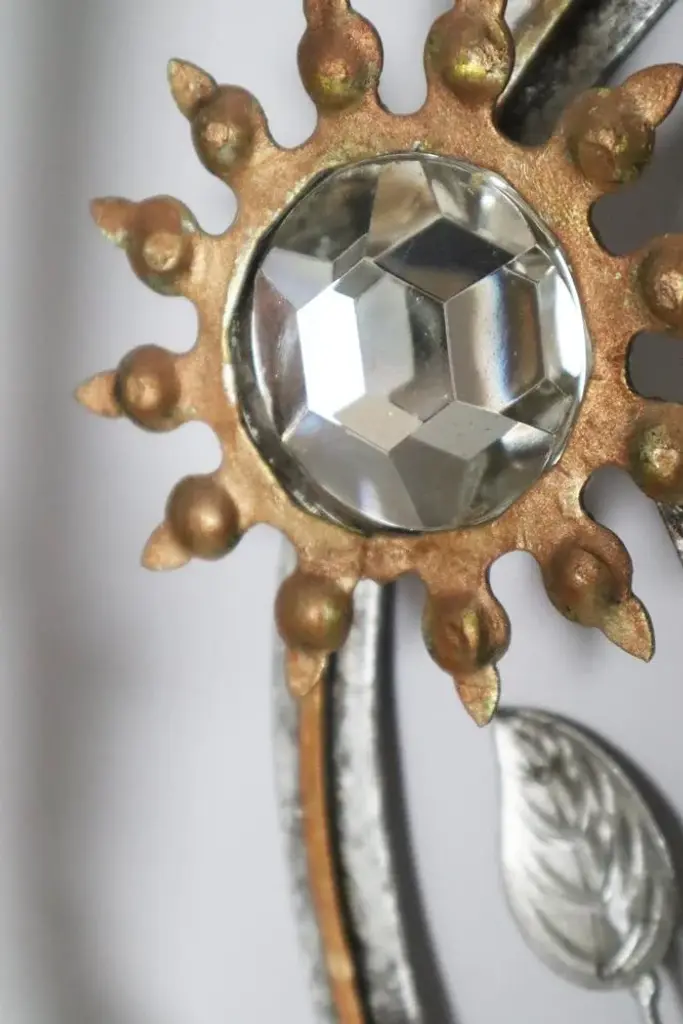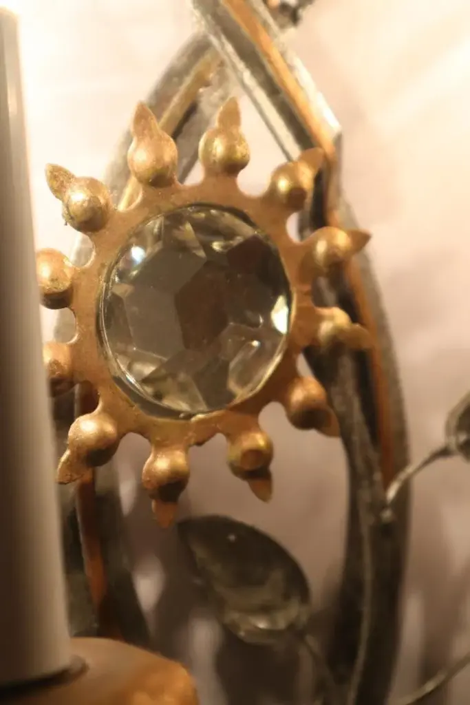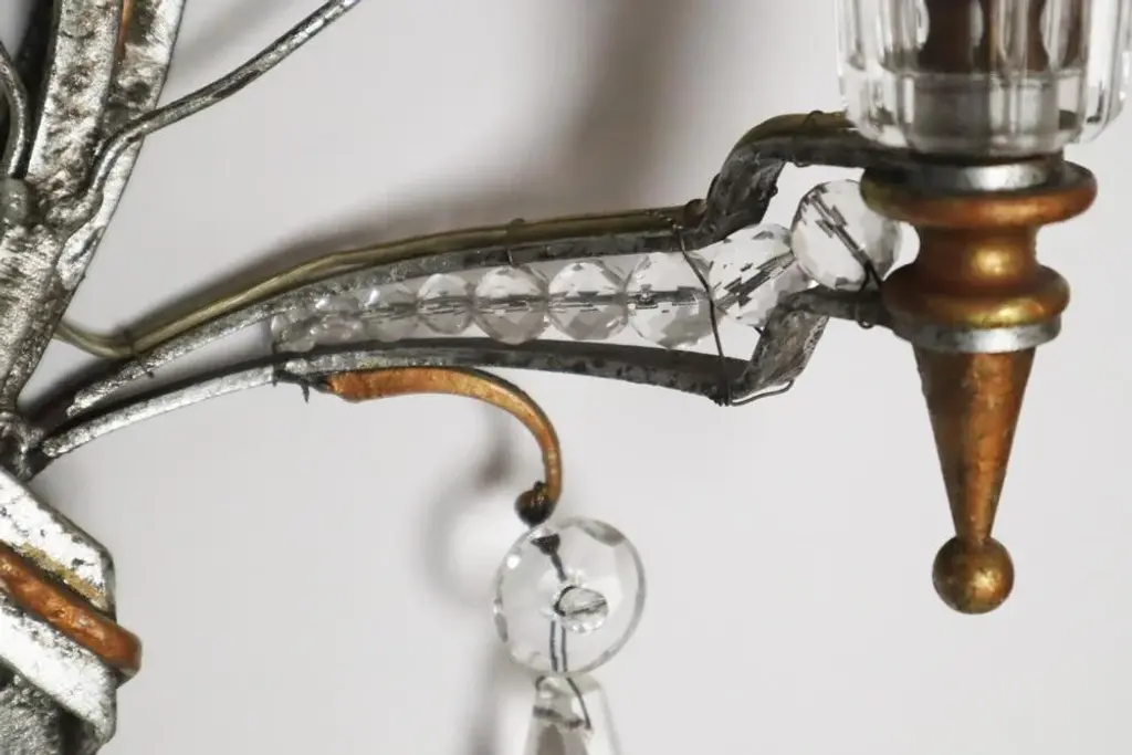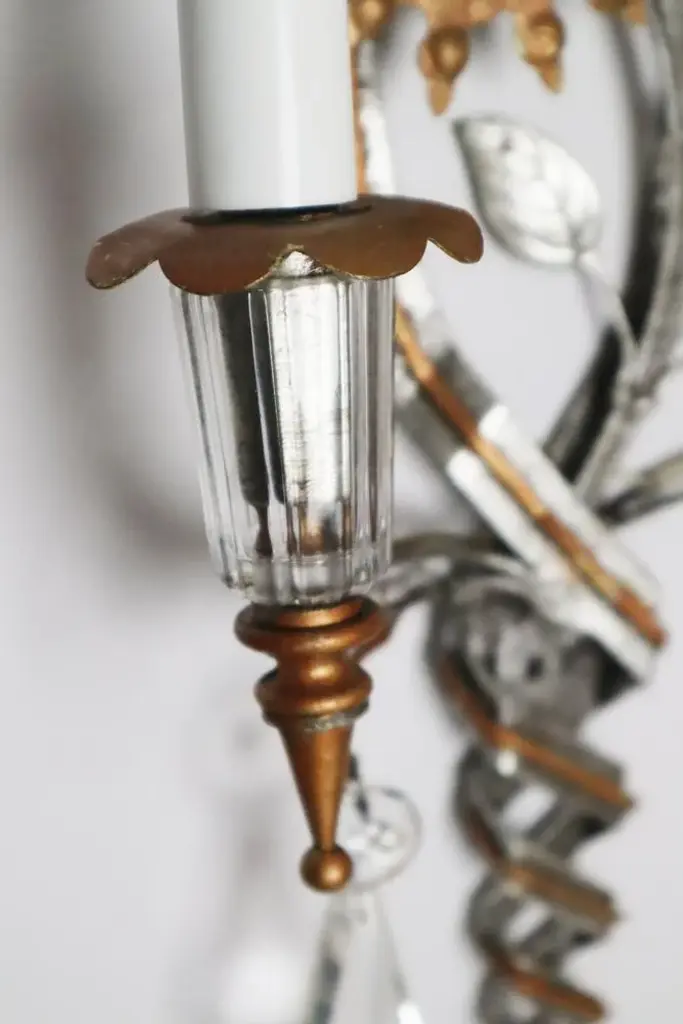 Vintage Lead Crystal Beaded Flower Candlestick in the style of Bagues, 1970s, in Very Good conditions. Designed 1950 to 1959 This piece is designed in the style of the selected designer and/or manufacturer